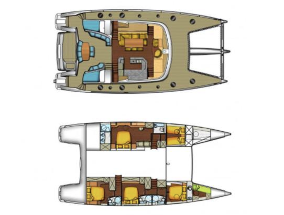 One owner suite with a private bathroom, 3 Queen size cabins with private bathroom, 1 twin cabin with private bathroom