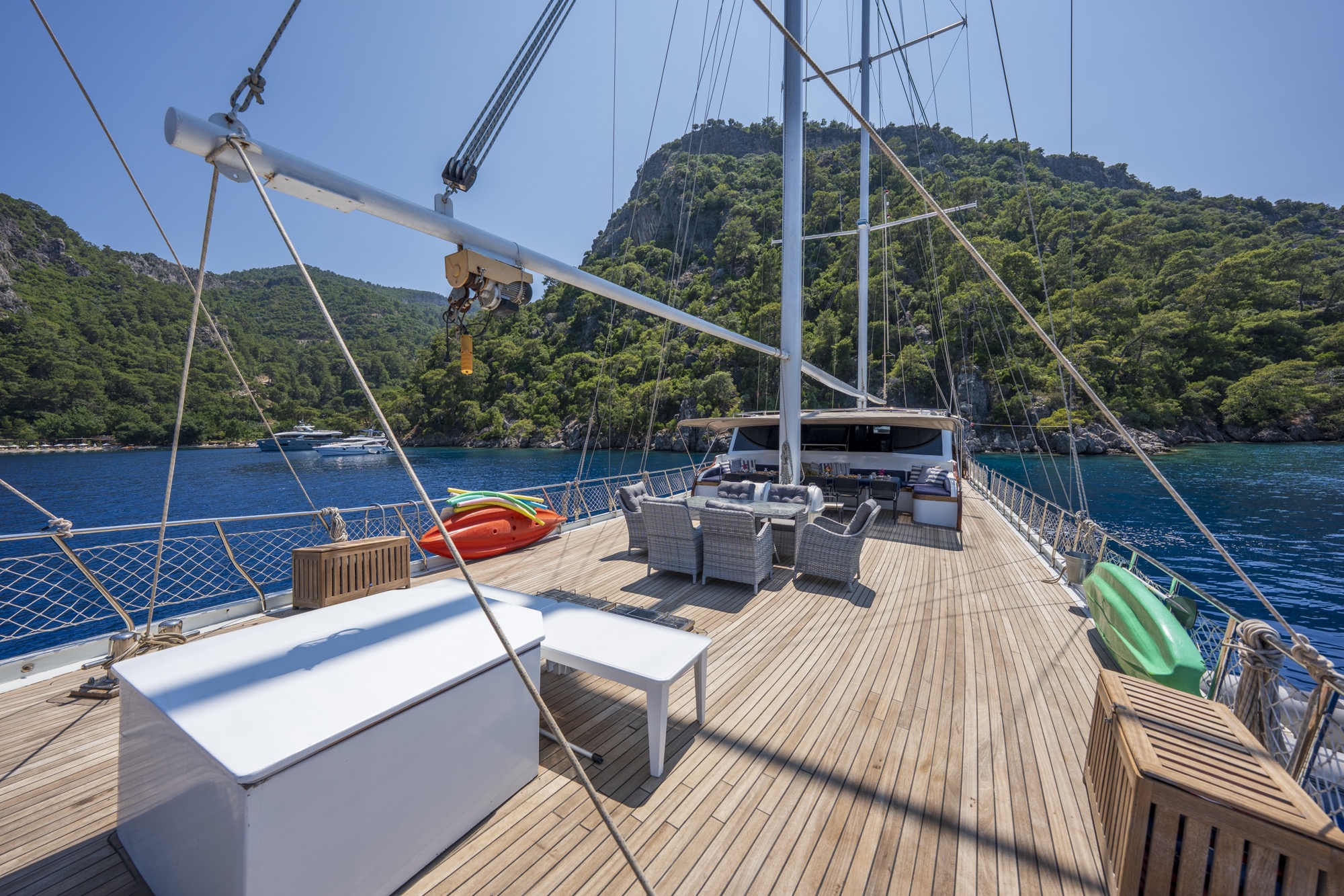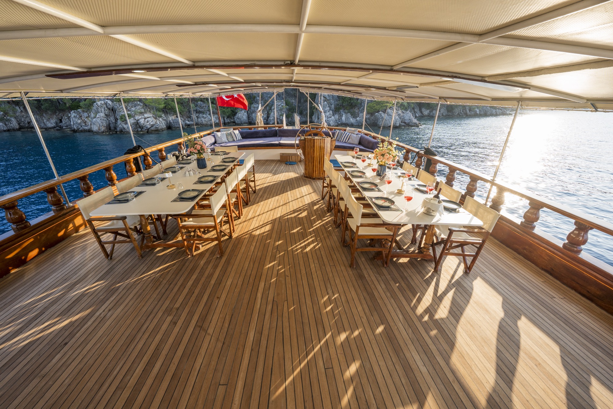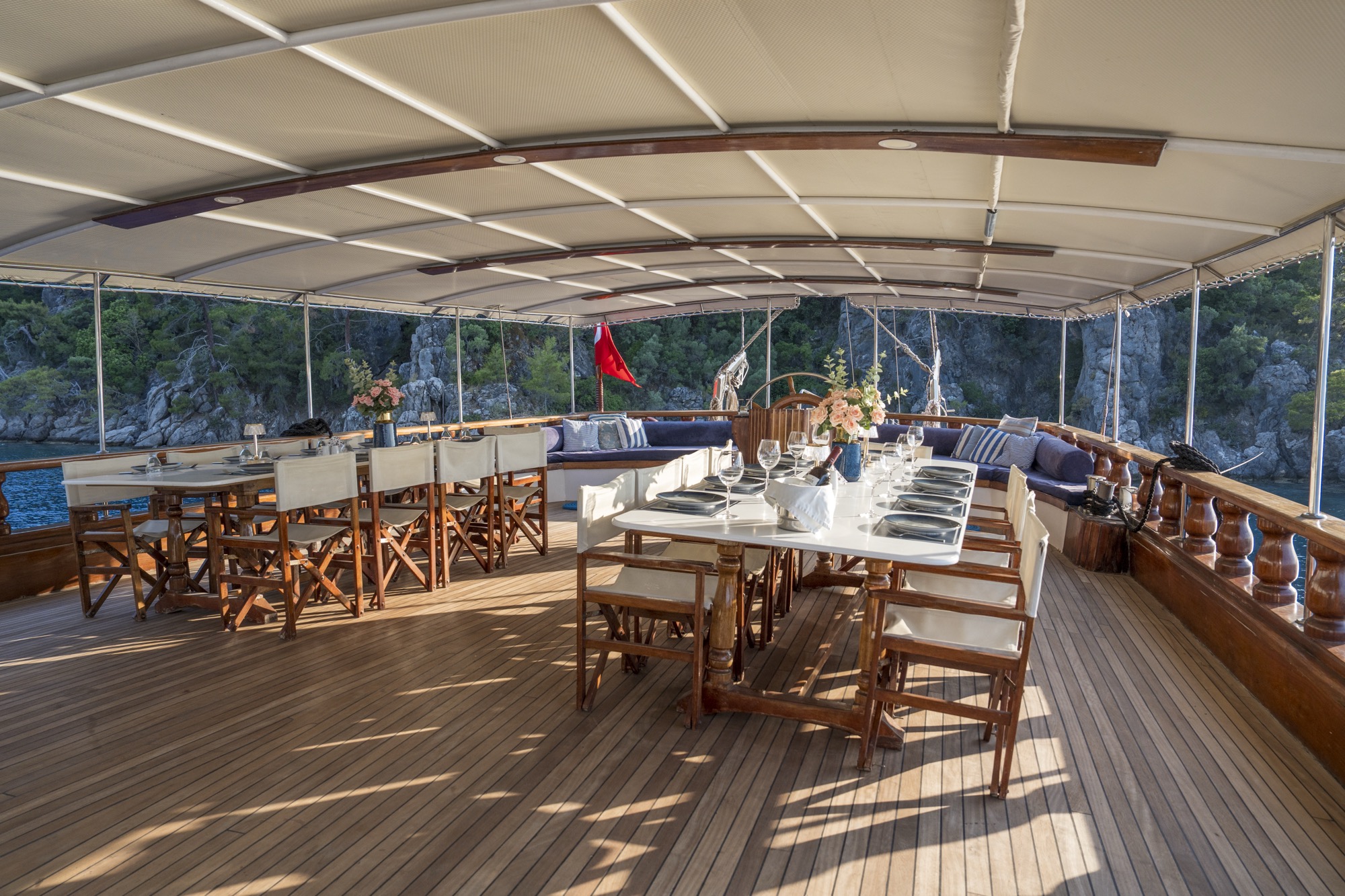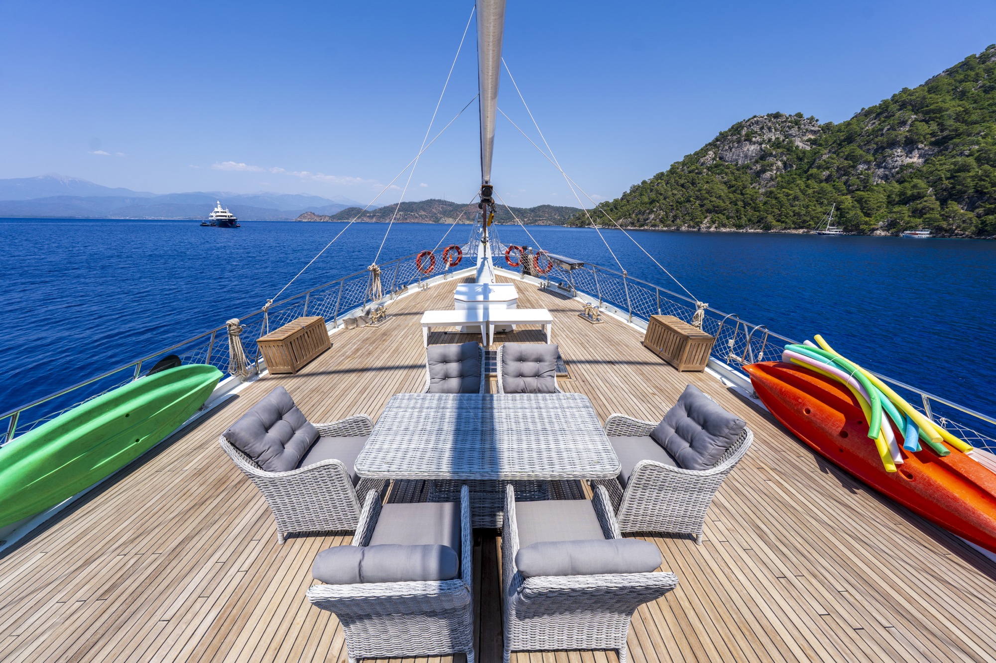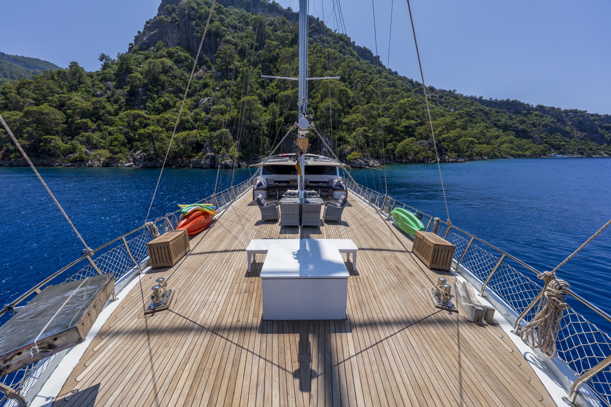 VAT, all meals and drinks for the charter, fuel for motor-operated equipment (tender, water sports), all marinas, all land tours, transfers, any personal expenses of the guests, crew gratuity (10-15% from the charter fee). Fuel surcharge for portion of charter outside of Turkish waters, any customs expenses if applicable.