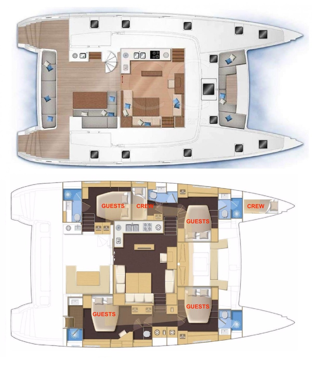 Charter rate includes private yacht and service of the crew in compliance with our quality charter, insurance for the yacht and the passengers (civil liability), bedding, towels and beach towels, use of on-board leisure equipment (snorkeling, fishing gear, kayaks, sea scooter, board games, Video and HiFi, WIFI....)