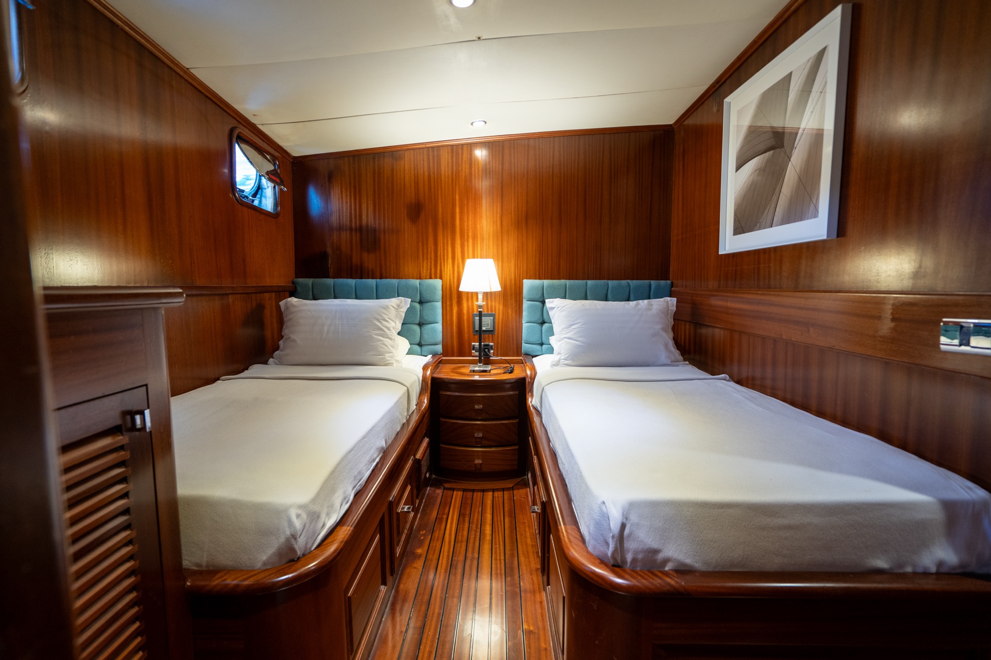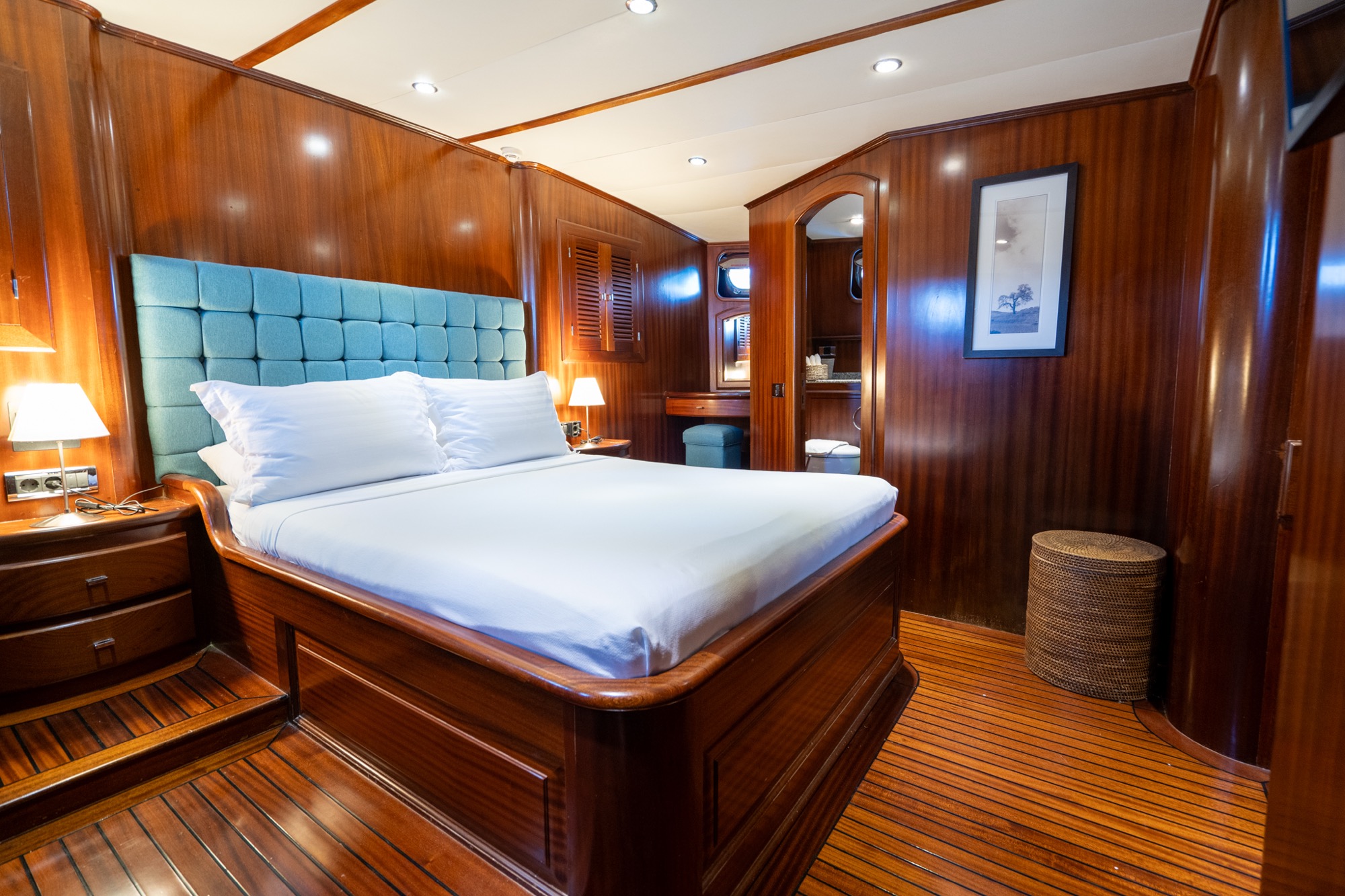 CAPRICORN 1 accommodates up to 11 guests in five comfortable cabins: two masters and three twins. Each stateroom features ensuite facilities. One of the twin cabins has a pullman berth, perfect for a child.