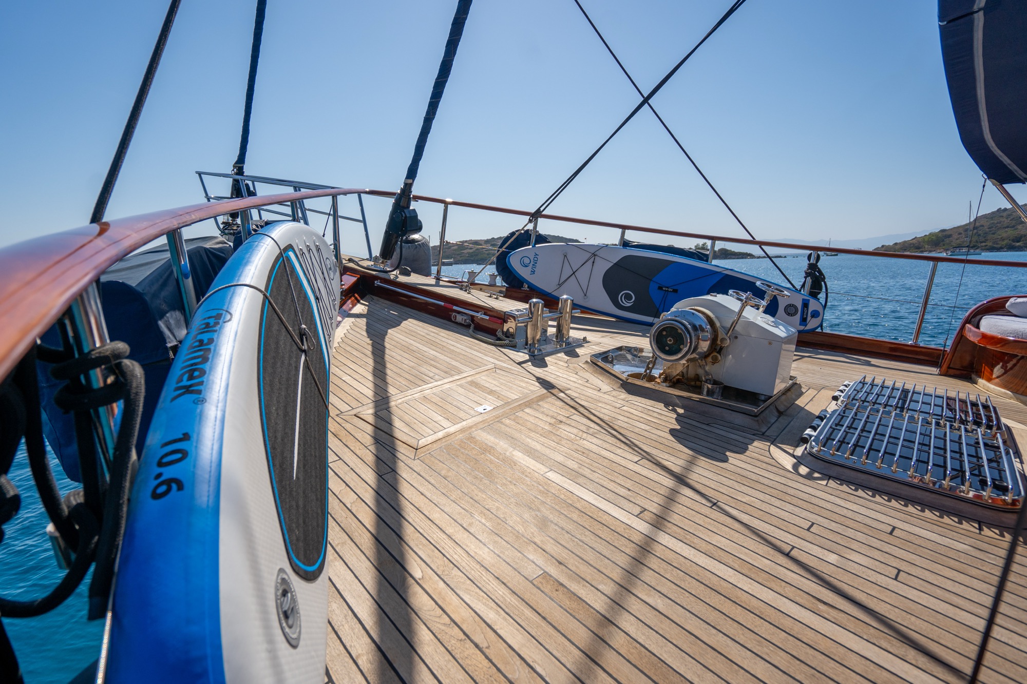 Her professional crew, numbering five, knows Turkey and Greece cruising grounds very well.