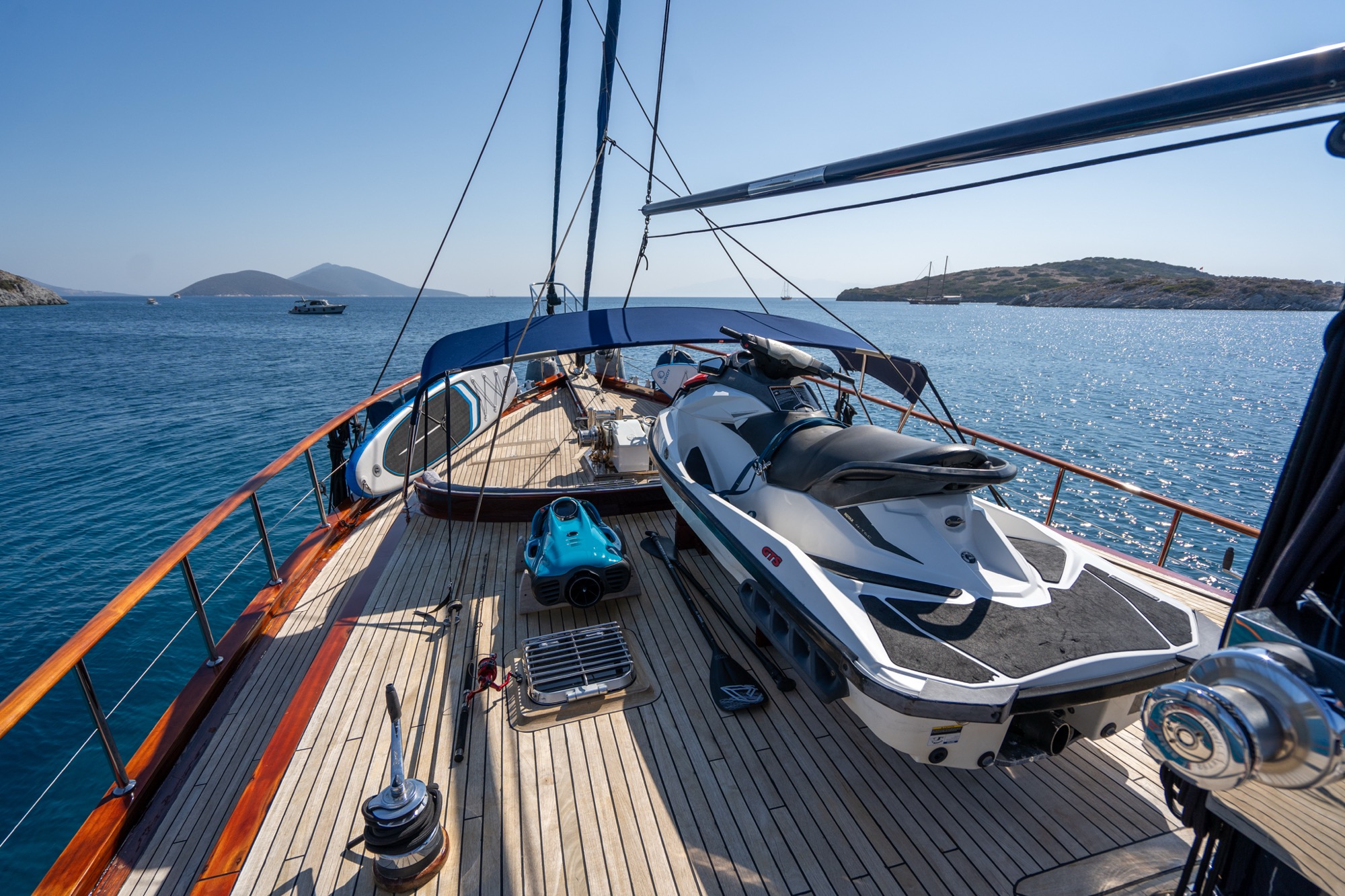 The yacht holds a wide range of water toys to entertain both kids and adults.
