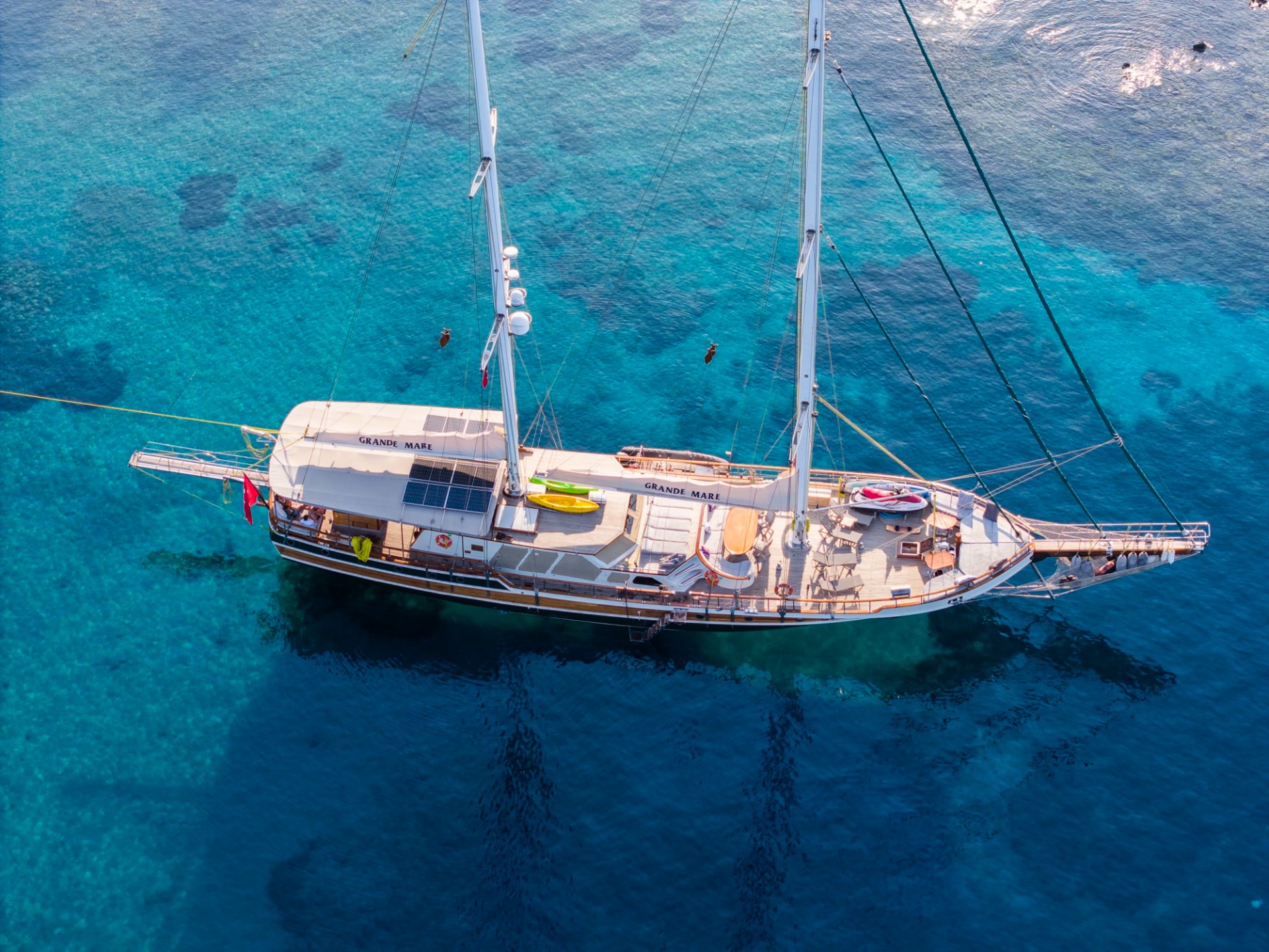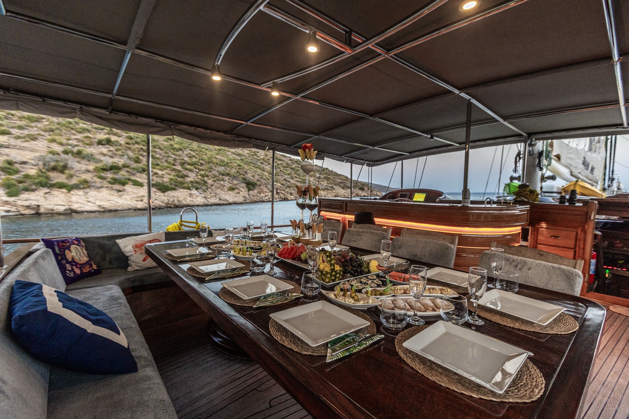 VAT, all meals and drinks for the charter, fuel for motor-operated equipment (tender, water sports), all marinas, all land tours, transfers, any personal expenses of the guests, crew gratuity (10-15% from the charter fee). Fuel surcharge for portion of charter outside of Turkish waters, any customs expenses if applicable.
