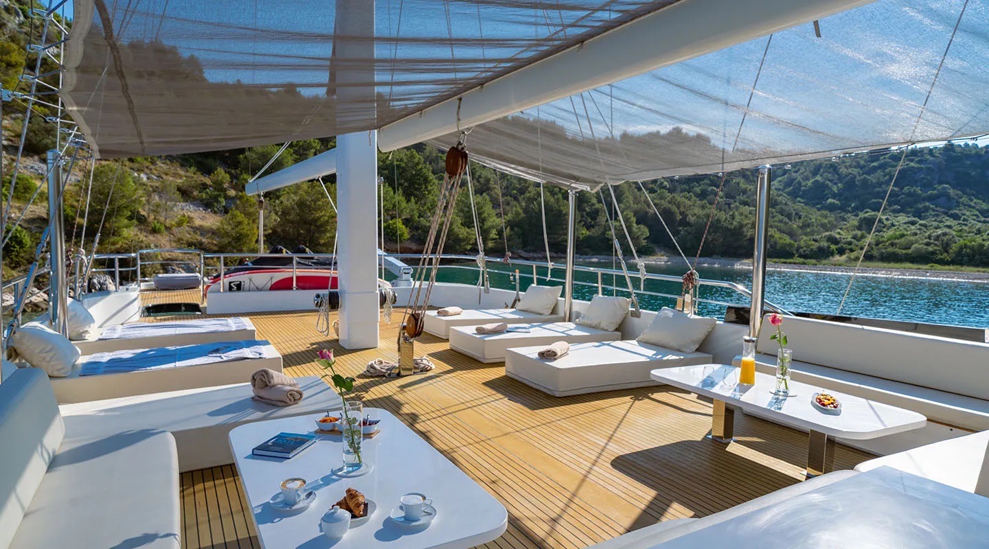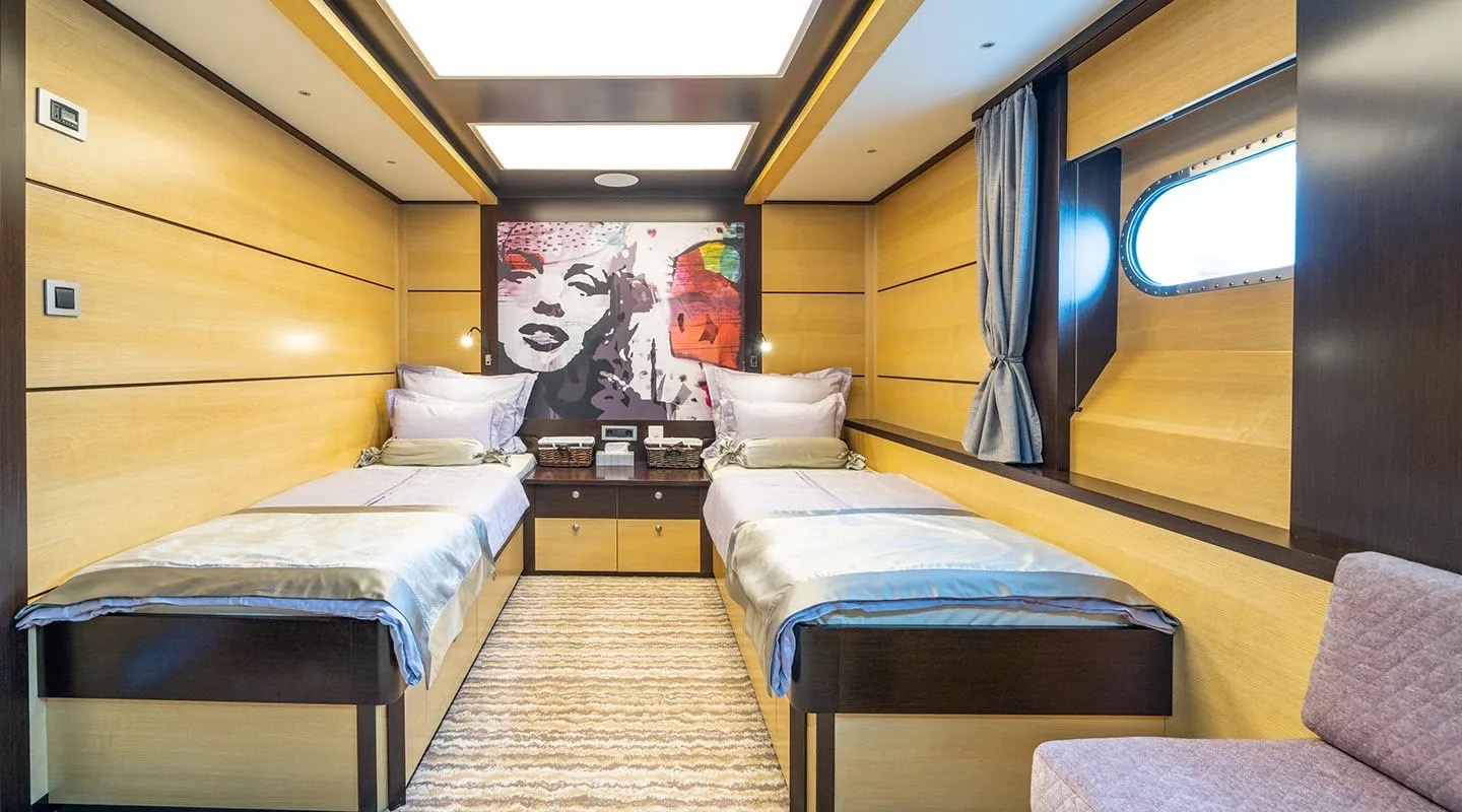 Charter rate includes, accommodation for maximum 12 guests in 6 cabins, crew - captain, Engineer, Chef, 2 Hostesses, 2 Deckhands, Steward, wifi