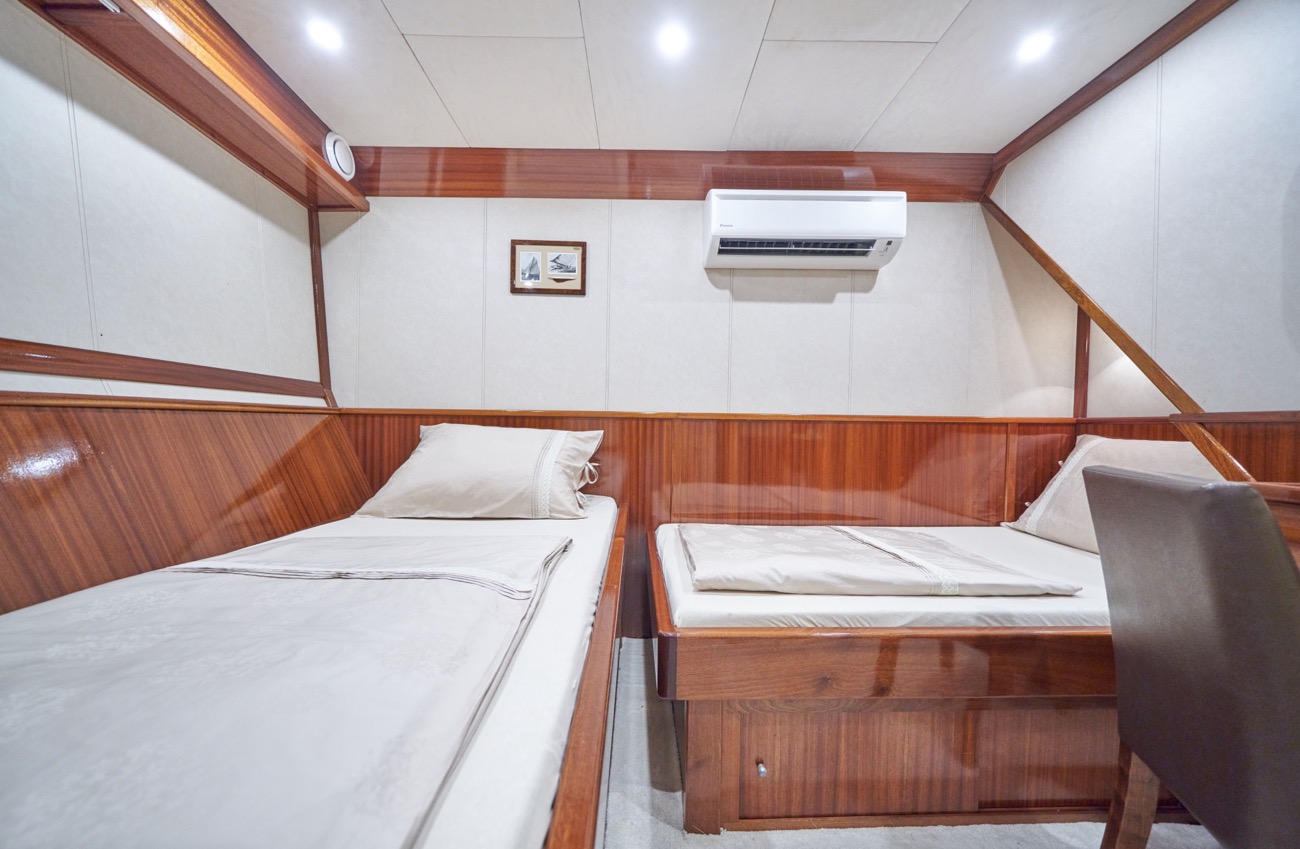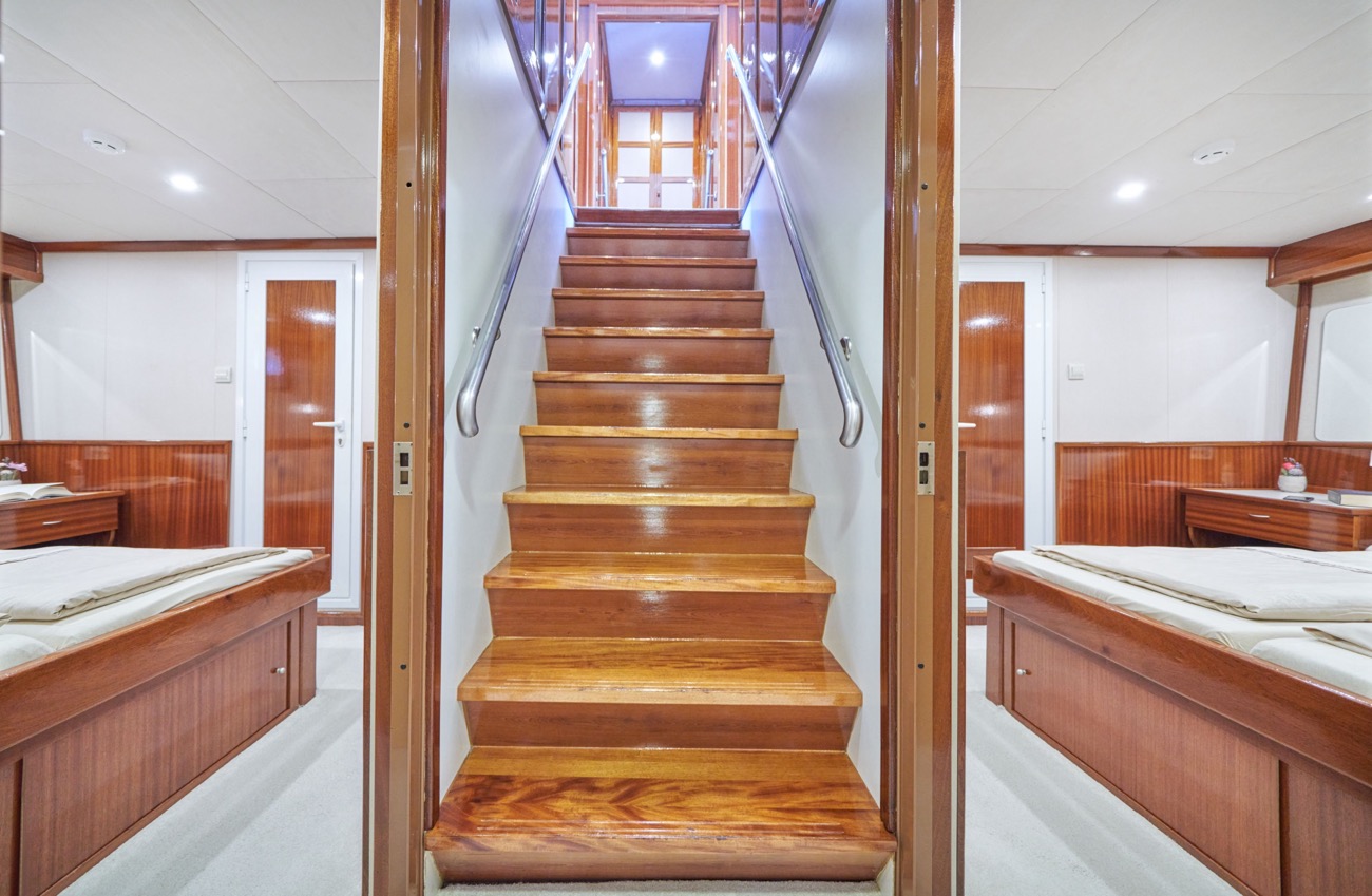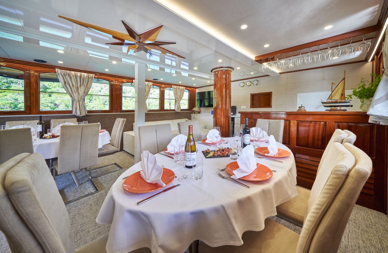 Charter rate includes, accommodation for a maximum of 18 guests in 9 cabins, the crew of 6 and their expenses, insurance of the vessel and the crew, fuel for 4 h of engine work daily, generator work 24/7, fuel for tender transfers to/from the vessel, use of recreational equipment (SUP, kayak, snorkeling gear), tourist taxes, Wi-Fi, VAT of 13%.