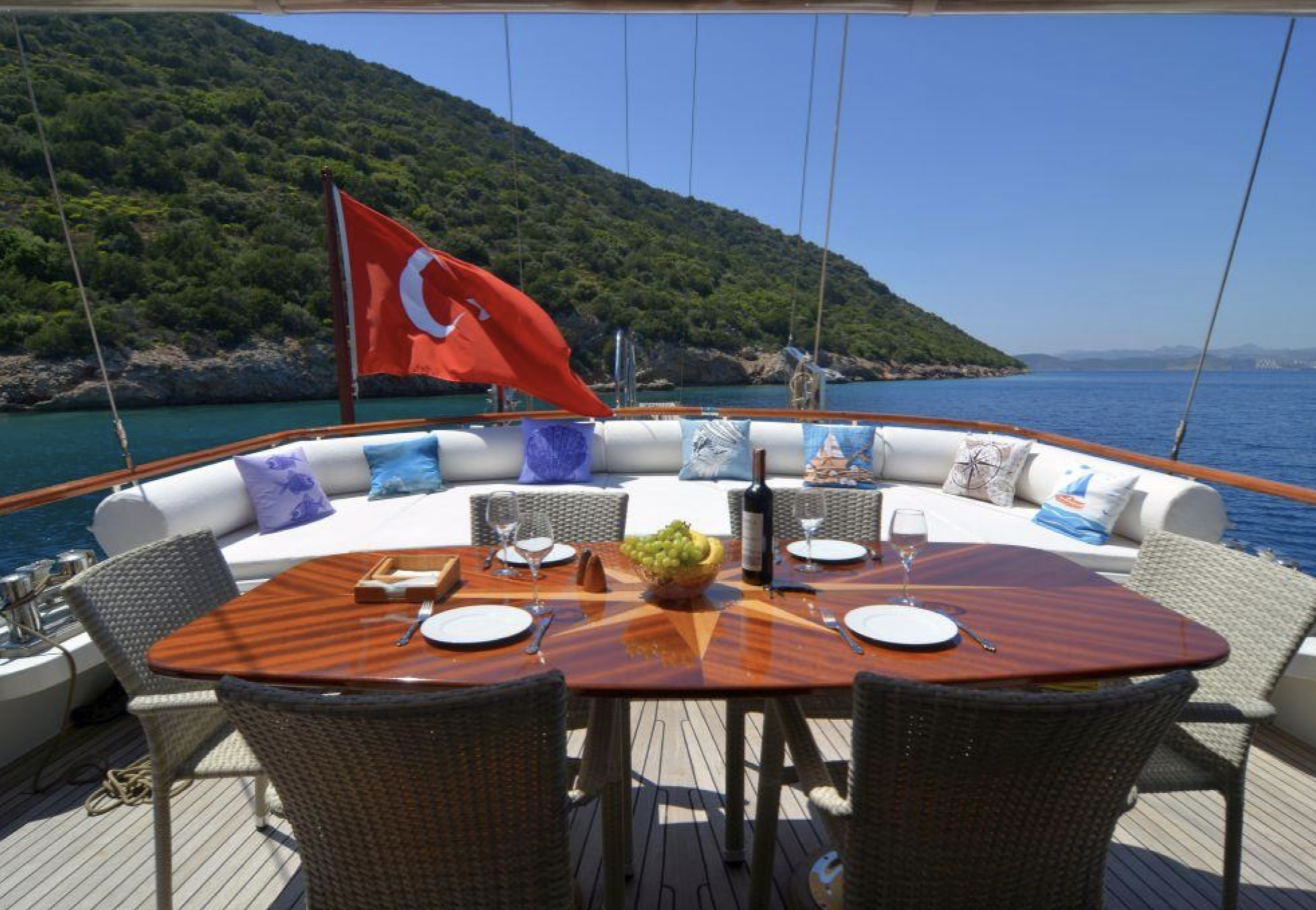 VAT, all meals and drinks for the charter, fuel for motor-operated equipment (tender, water sports), all marinas, all land tours, transfers, any personal expenses of the guests, crew gratuity (10-15% from the charter fee). Fuel surcharge for portion of charter outside of Turkish waters, any customs expenses if applicable.
