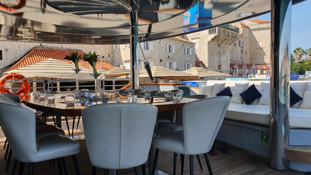 The 7th cabin is on request and only available for a party of 14 (Croatia only), otherwise there are 6 guest cabins on disposal.