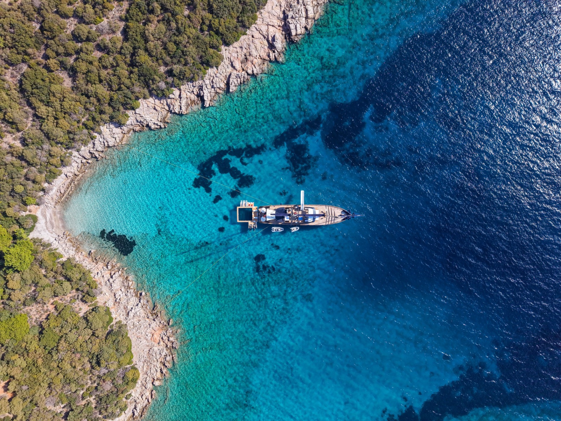 The cabin configurations consist of 1 master cabin, which includes a dressing room, Turkish bath and a steam room. 4 x guest cabins with double beds and 1 x guests' cabin with 2 single beds that can be converted to a double.