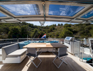 • use of onboard water sports equipment: Rib with 70 hp motor, SEA BOB 1xF5S Lumex Orange incl. Kamera im Black Design, water skies, wakeboard, towable ring, JOBE lunar 3 p, two stand-up paddles, kayak for 2 pax, kneeboard, yoga mats x 2, T-Rex, Roller for pushups, weight 5kg x 2, snorkeling gear: mask & flippers, fishing gear, floating mats & wetsuits for grownups & kids.