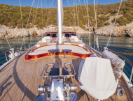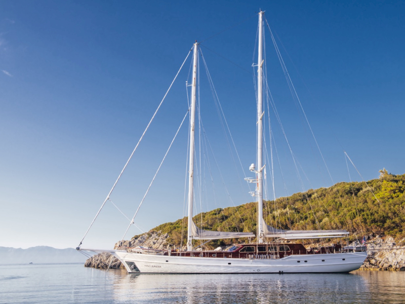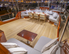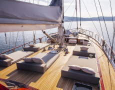 HIC SALTA features a displacement wood hull and wood superstructure, with fabulous teak decks and as a charter yacht, is renowned for high levels of safety and comfort. Sunning, swimming and watersports make up a huge part of any gulet vacation and HIC SALTA caters to all of her guests' requirements with ease.