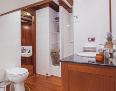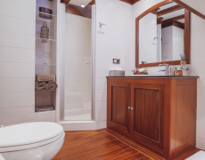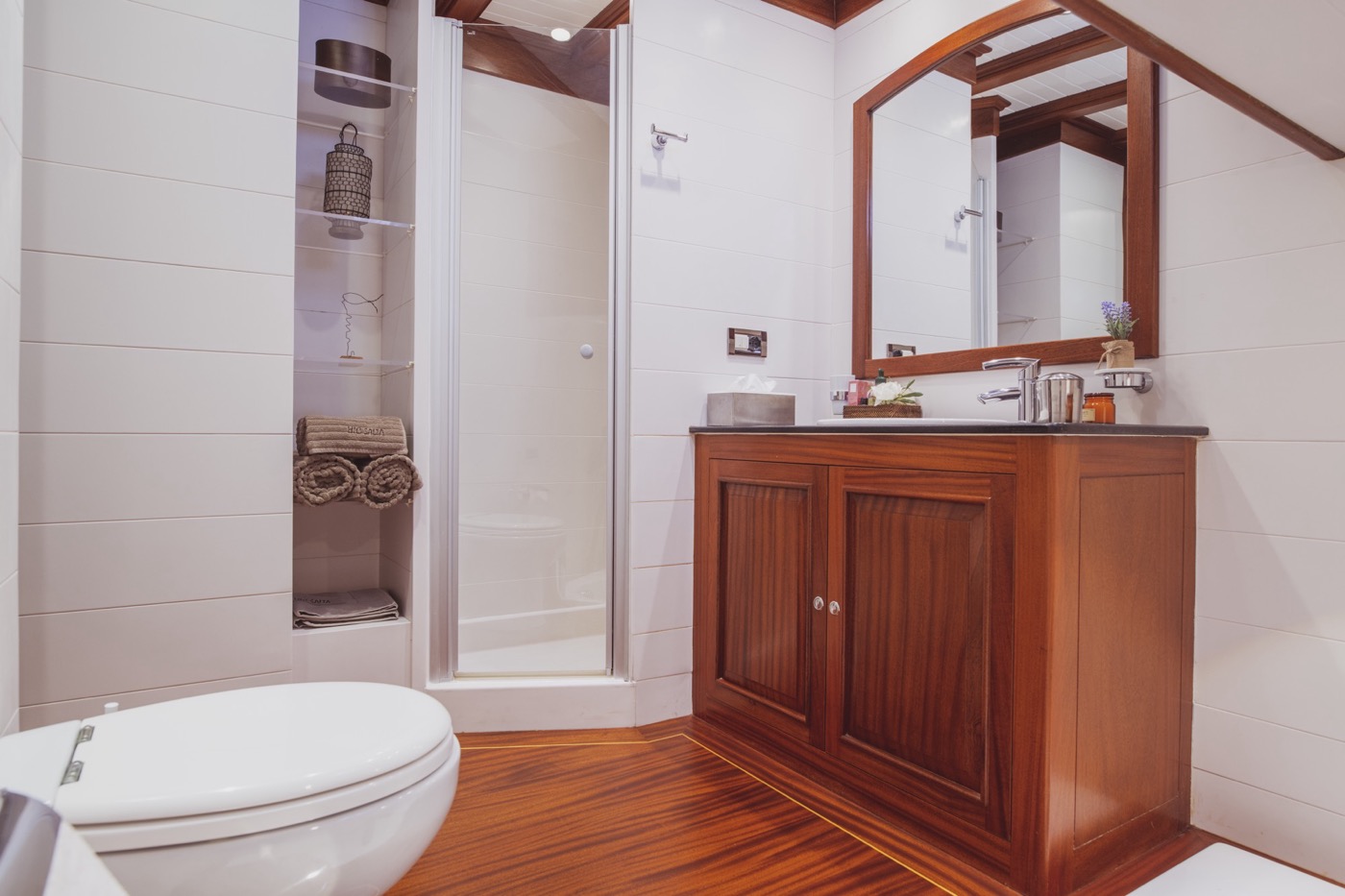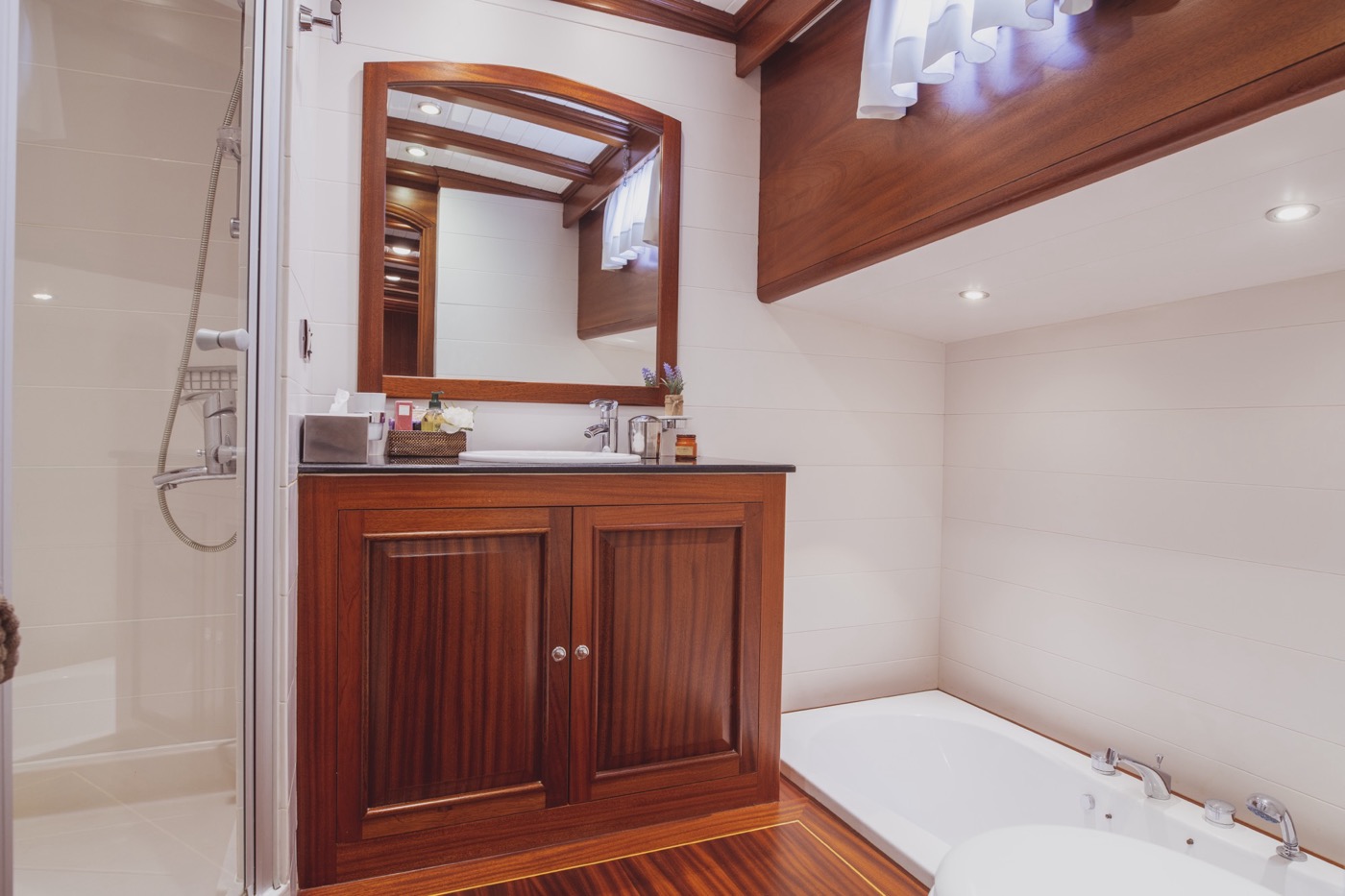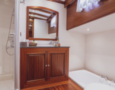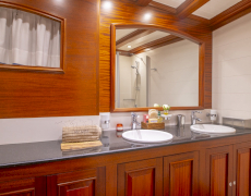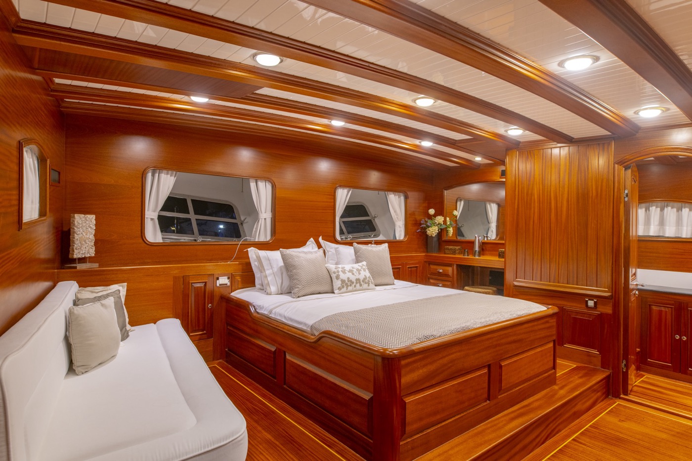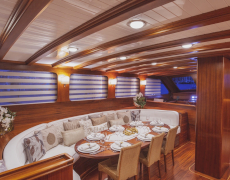 HIC SALTA offers stylish accommodation for up to 10 guests in 3 double and 2 twin ensuite cabins. All cabins are beautifully appointed with paneled mahogany joinery and doors. Each cabin is served by individually controlled air conditioning and heating. The gulet is also capable of carrying up to 7 crew to ensure a relaxed, and very luxurious charter experience.