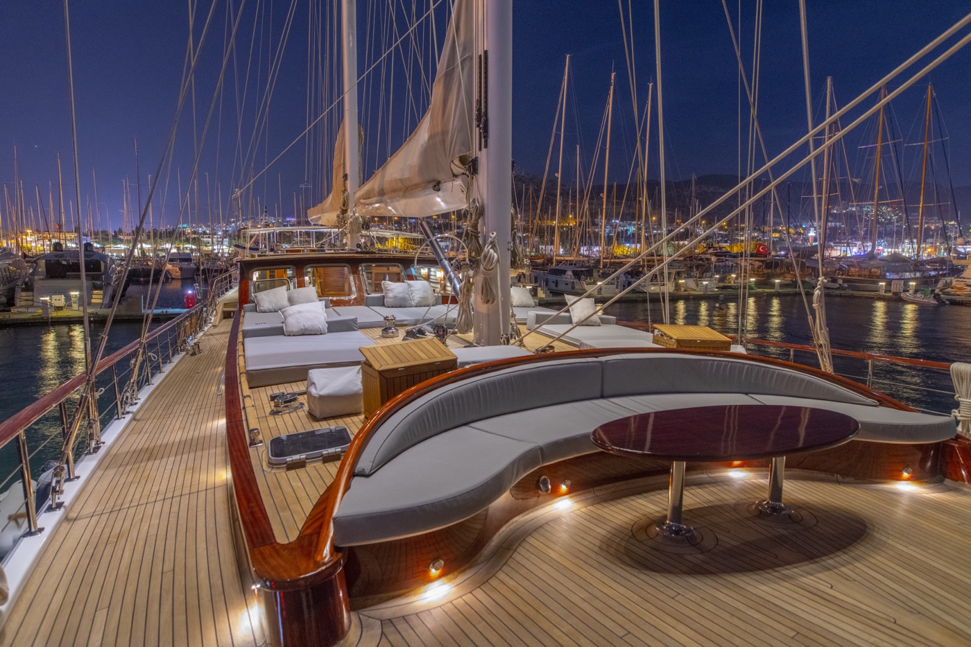 The luxurious 42-metre gulet, HIC SALTA was built in 2006 and refitted in 2017. This luxury vessel's sophisticated exterior design and engineering are the work of the team at Valena Yachting, who were, back in the early 2000s, responsible for producing with a small fleet of superior sailing gulets which are widely regarded as some of the finest vessels ever built in Turkey.
