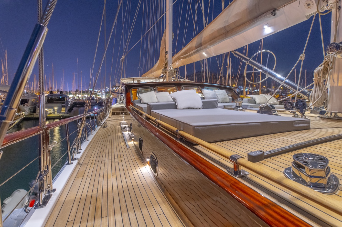 This is an eye-catching vessel and an excellent sailing yacht. She is ideally suited to charter and with her professional crew of seven, provides an incredible charter experience to those seeking something that is a cut above the rest.