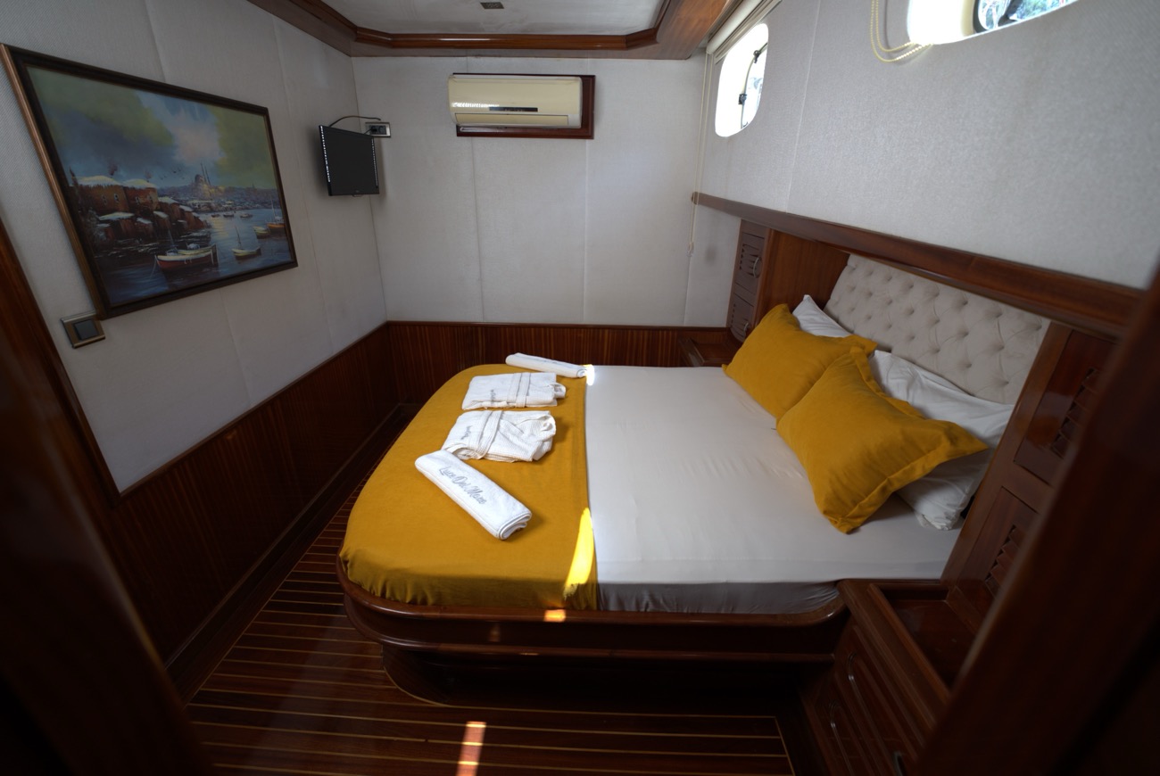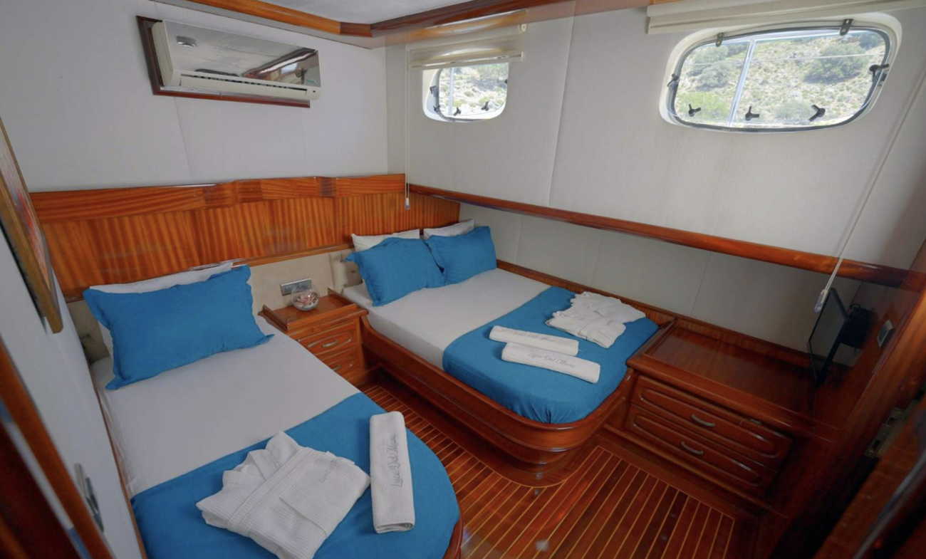 1 master suite, 2 double cabins and 2 triple cabins with separate beds.