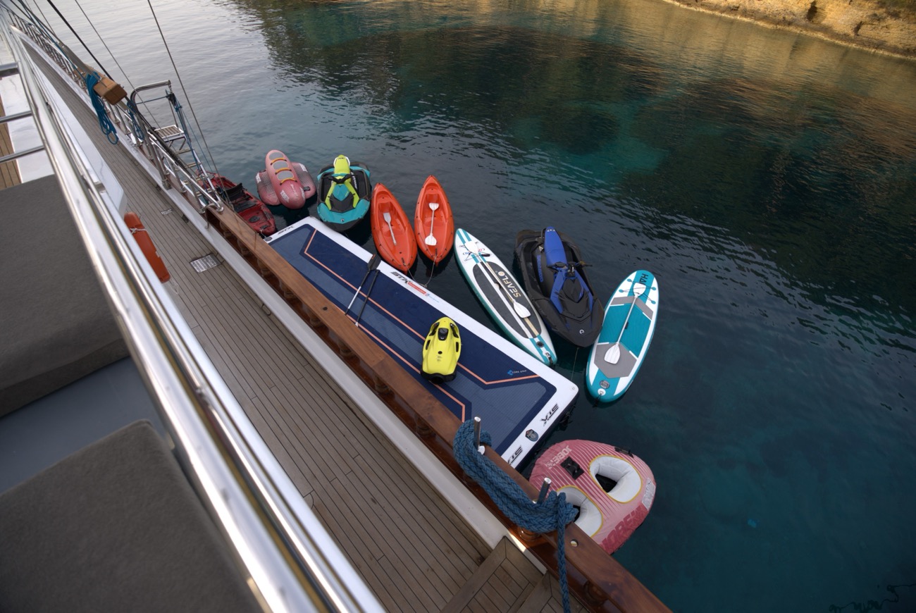 Alquiler del yate, servicios de tripulación, seguro del yate, combustible para 3-4 horas de navegación (en términos de navegación, travesías en yate) al día (en promedio), combustible para hacer funcionar los generadores del yate (tiempo limitado durante el día), ropa de cama, toallas, uso de los juguetes acuáticos disponibles a bordo (el combustible para ellos se paga aparte).