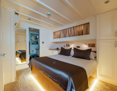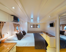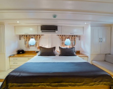 Each stateroom has 180X200 anti-bacterial orthopedic bed, AC, 22" LED TV, wardrobe, free bathroom towels, sunbathing towels, shampoo, shower gel, soap, sandals.