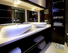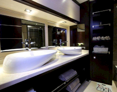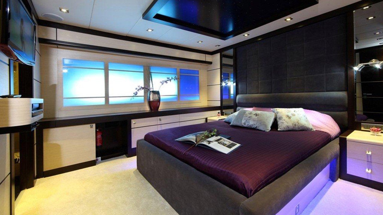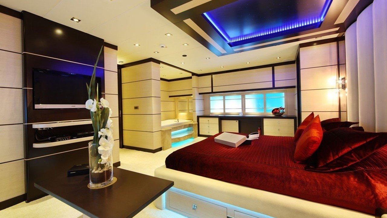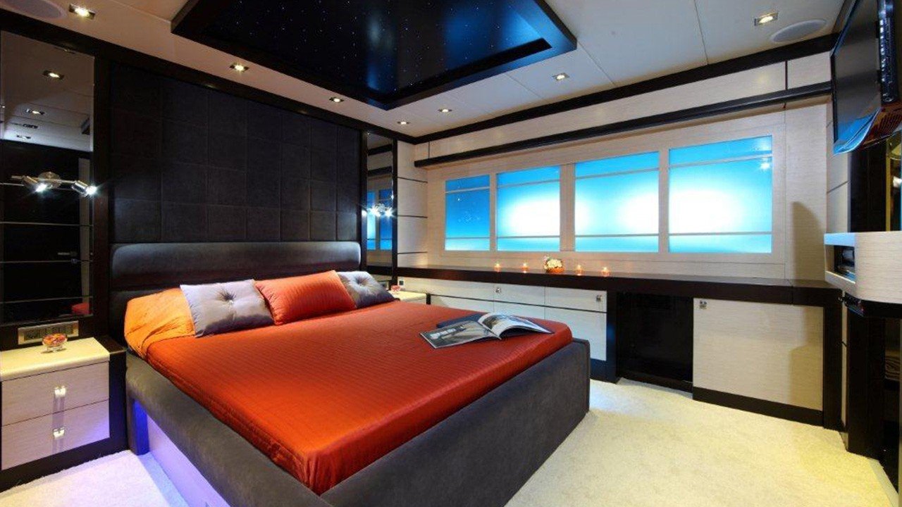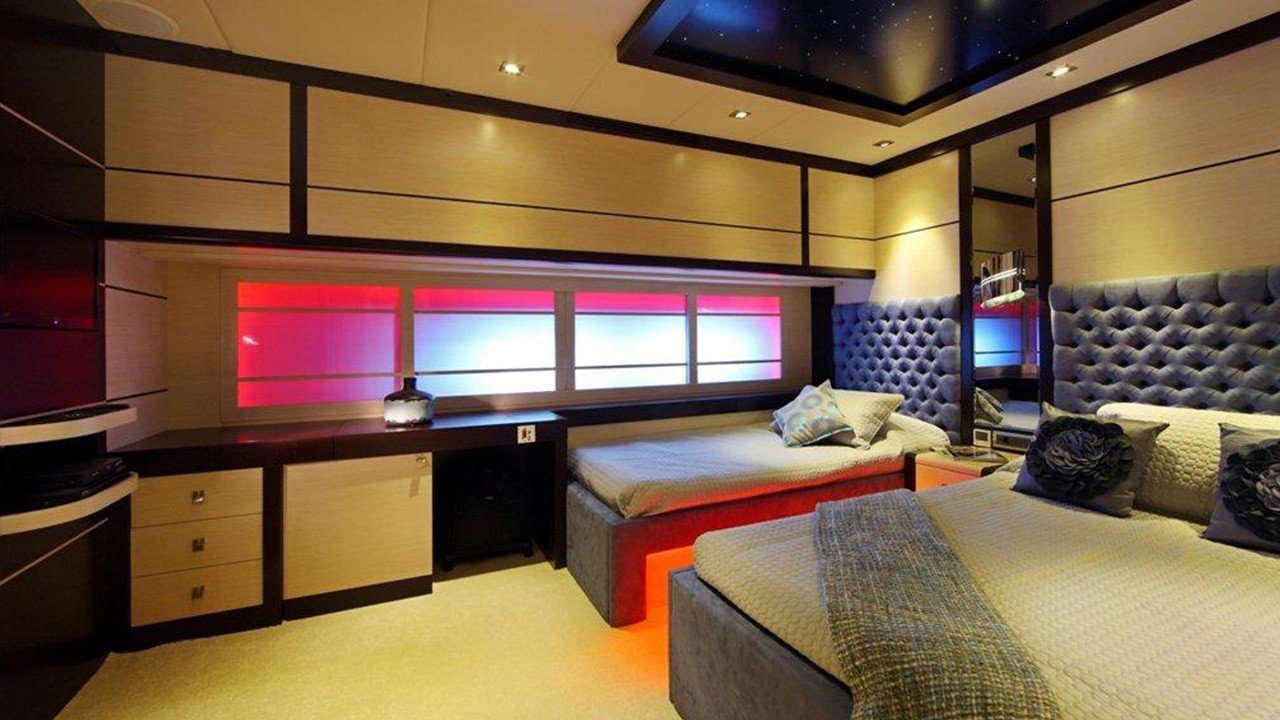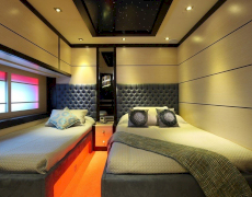1 * Forward Master Cabin, 1 * Aft Master Cabin Two very large and ensuite cabins with Jacuzzi and King Size Beds. One aft below deck, other forward main deck. Forward Master Cabin has separate clothing room in cabin.