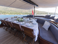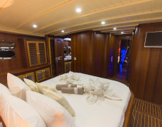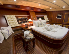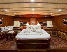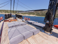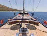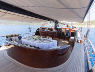 Built in Bodrum, this handcrafted beauty and has all the features of a traditionally-styled vessel. Her carefully designed exterior and interior distinguish her as one of the most luxurious wooden gulets ever built and she is easily one of the most sought after charter yachts in the area. From her expansive teak decks to her tastefully decorated interior, every aspect of this yacht promotes harmony.