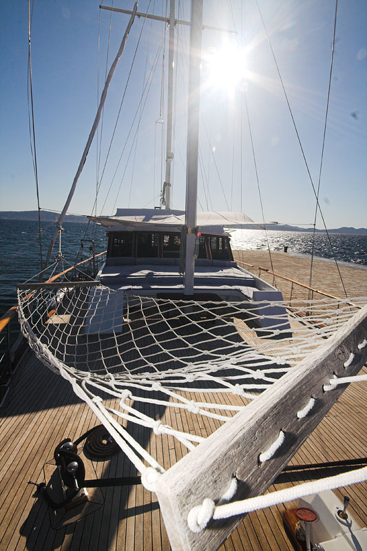 Food, beverages, additional meals, personal expenses, land tranfers, shore excursions, adverse activities (scuba diving, rafting, big game fishing, etc.), guided tours, more than 4 hours of navigation per day (each hour is charged extra), more than 6h of generator work daily, marina fees (the boat goes to marina only on the guests' demand), tips for the crew.