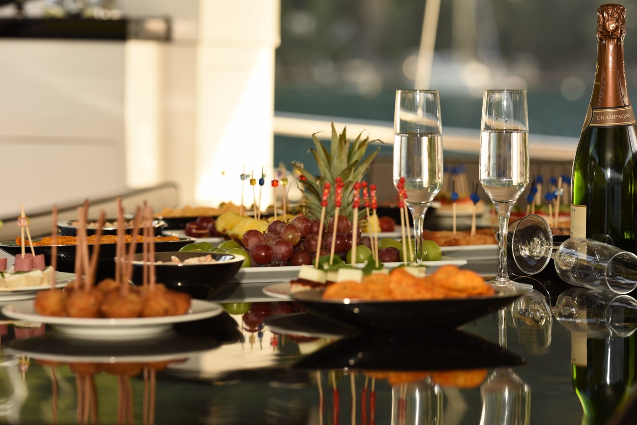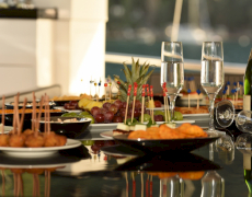 Dining on board is a creative pleasure where WHITE SOUL's choice of dining venues caters for any occasion: pre-dinner cocktails on the forward deck, large formal gatherings in the saloon or an al-night celebration around the large aft deck dining table following a sumptuous five course meal.