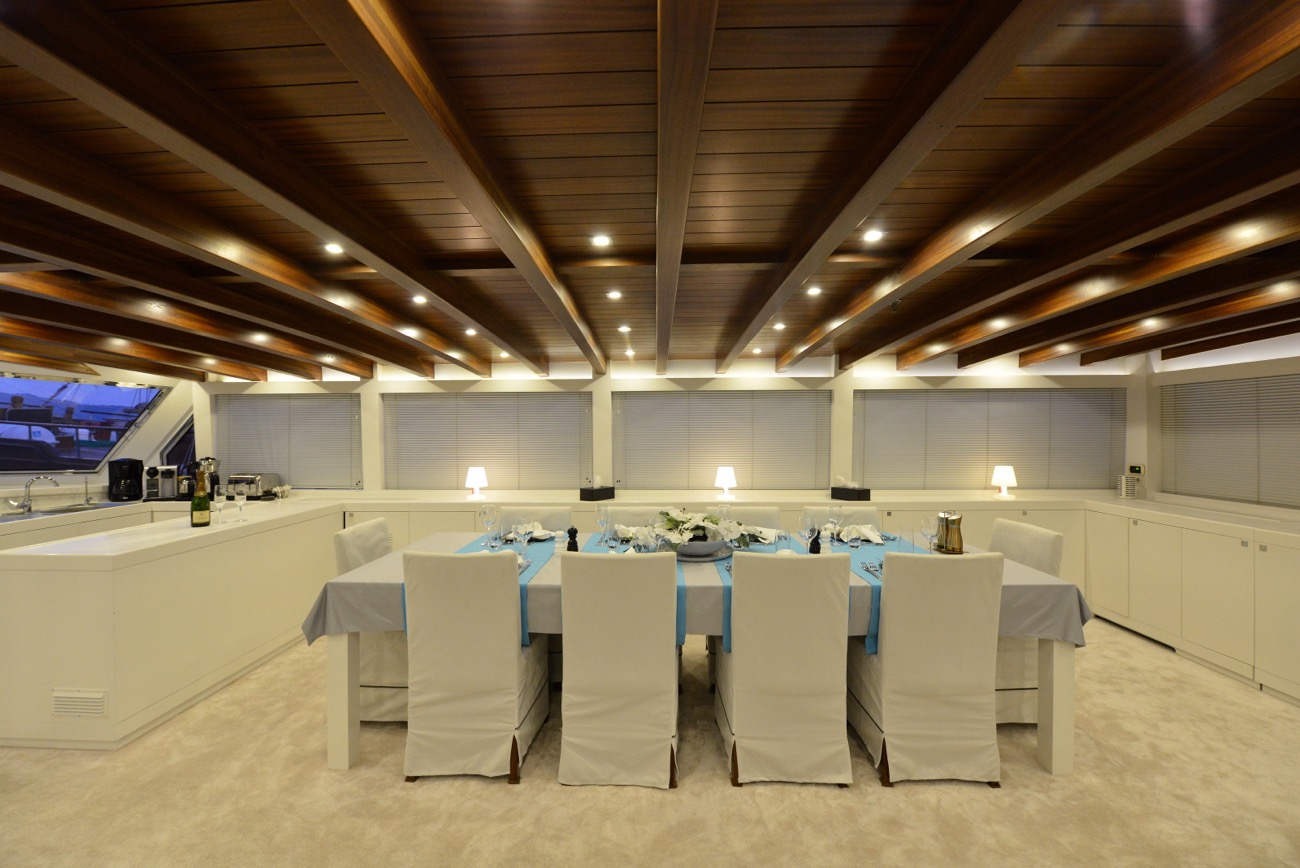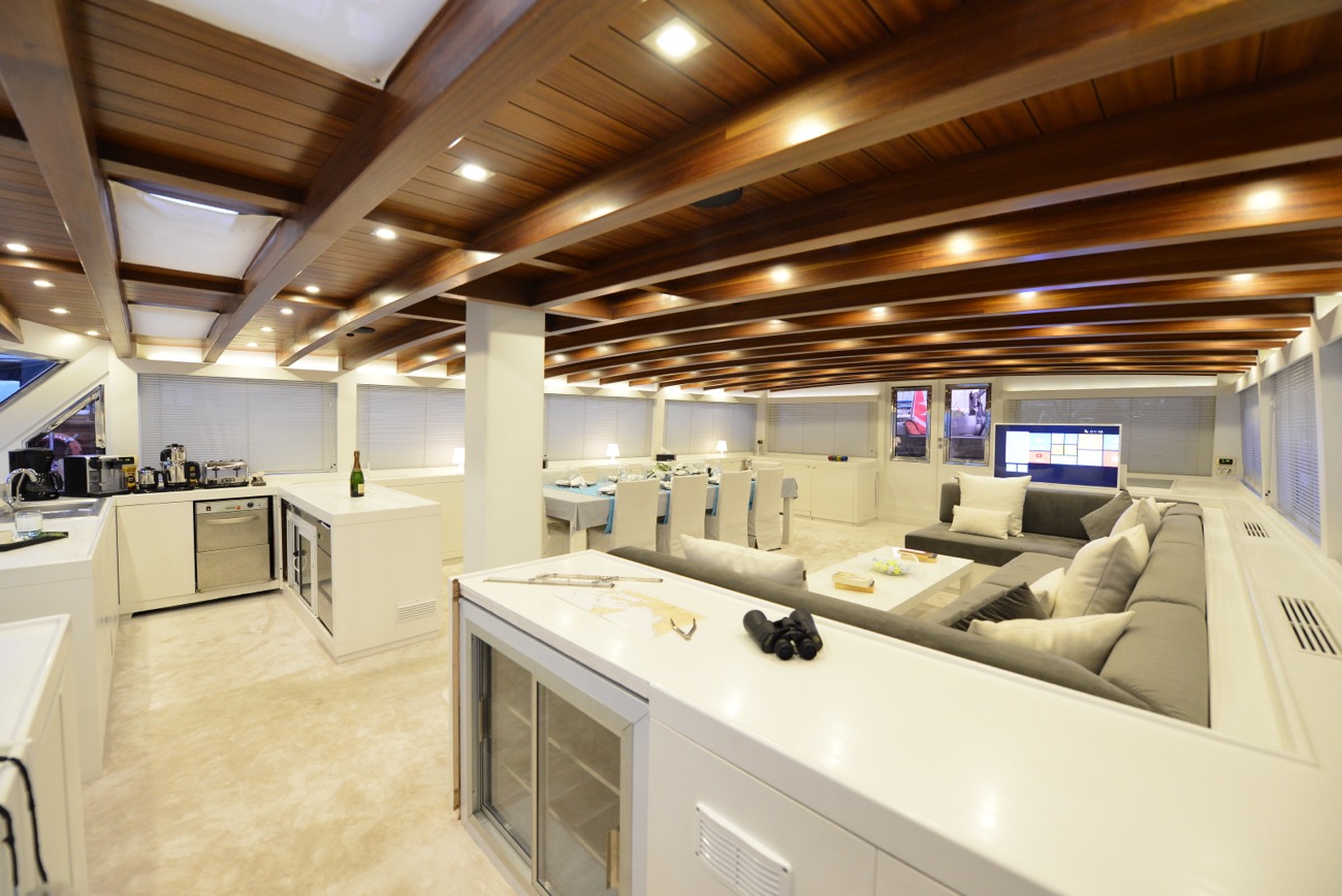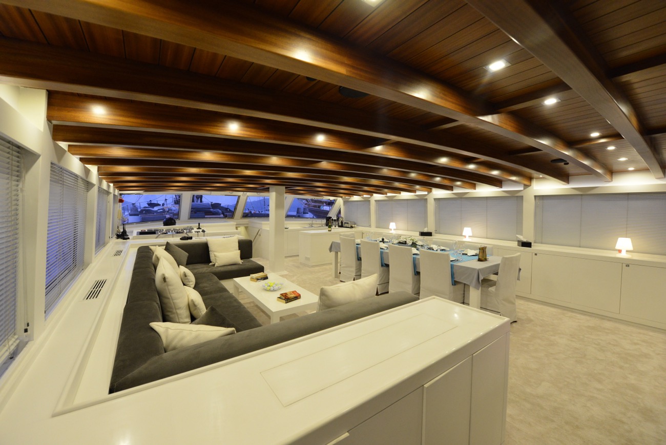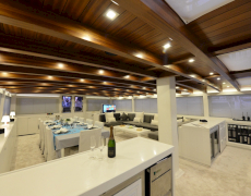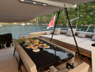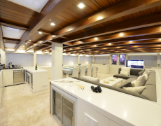 Guests can choose to lounge in the air conditioned comfort of the yacht's spacious deck saloon, complete with lushly cushioned sofas and well-equipped entertainment system. Alternatively, they can opt to find a quiet spot to relax and stretch out on deck, under the cover of the aft awning or forward, on one of nine sun mattresses.