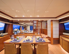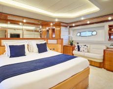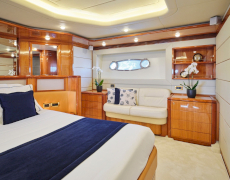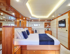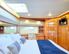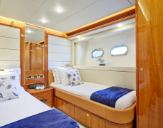 Μaster suite, a VIP cabin and 2 twin cabins one with an extra pullman berth, all with ensuite facilities.