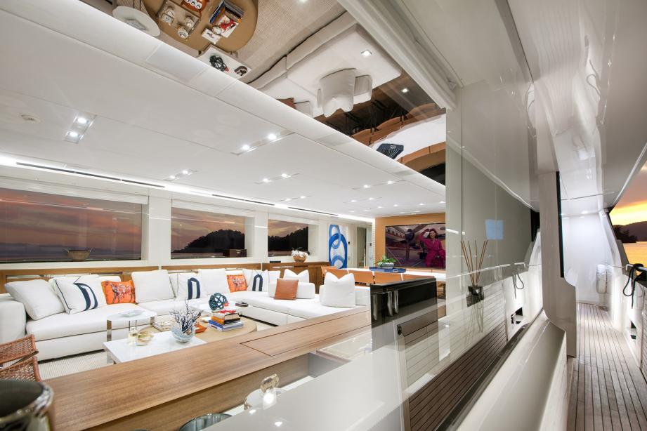 Main saloon enjoys an 85" inch large Screen TV and a 55" inch Screen TV