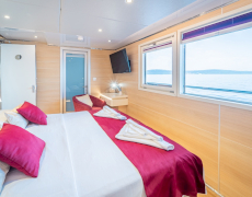 Main Deck: 7 Double cabins with double beds. Twin cabin with 2 single beds.
