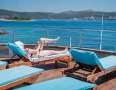 VAT, Shipboard accommondation (maximum number of 34+2 guests sleeping in 17 cabins), fuel for cruising (4 hours/day), crew (12 crew members), unlimited A/C, linen (bed sheets, bathroom, and beach towels), wifi