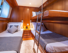 1 Master, 1 VIP and 2 Twin cabins with pullman beds each, all with en-suite facilities.