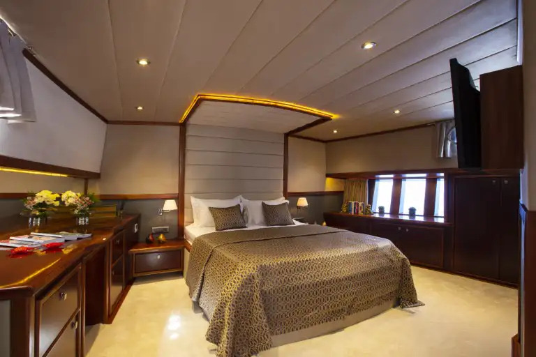 Yacht price includes, crew Services, cruise fuel for maximum 4 hours a day, port expenses in Turkish territorial waters, pedal board, fishing tackle, snorkel and hammock, 24-hour air conditioning, WIFI