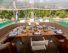 Magnificently constructed using only the finest materials, DOLCE VITA offers spacious accommodation for up to 10 guests in two master cabins, two double-berth cabins and one triple cabin with double and single berth combination. All cabins are air-conditioned and are fitted with TV, minibar and DVD player.