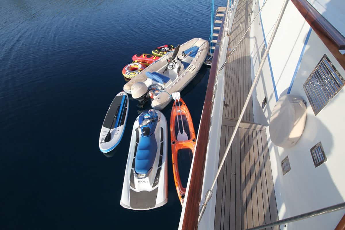 VAT, food & beverages, fuel for water sports activities, Jet Ski is 2450€ per week + gasoline (optional), Greek Charter Permit, custom expenses & Greek port charges in case of sailing in Greece, crew gratuity (customary - 10%)