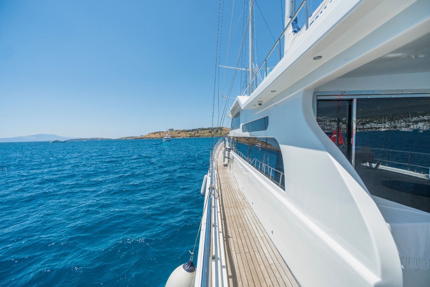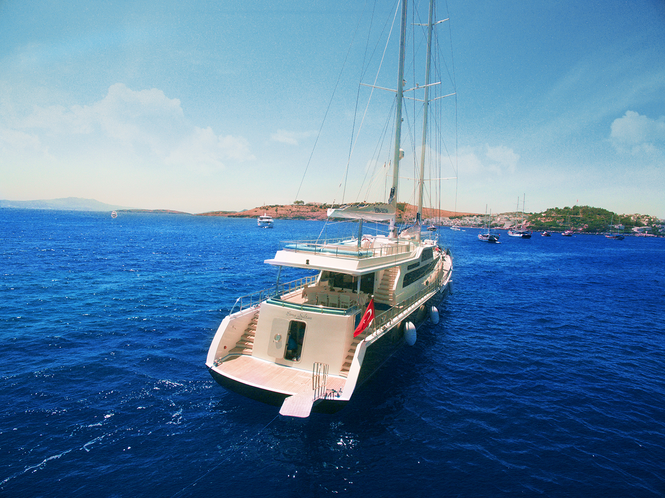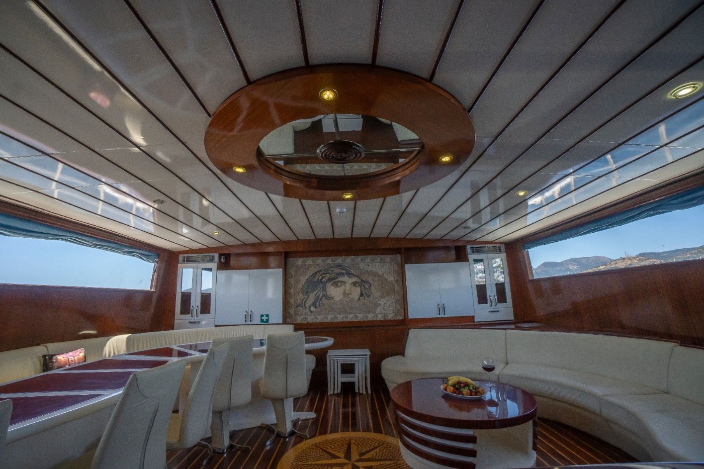 43-m sailing gulet ESMA SULTAN is one of the nicest gulets for a luxury charter holiday in Turkey. Her main difference from other gulets is modern interior design and the inrerior design that blends features od a motor yacht and a sailing yacht.