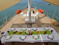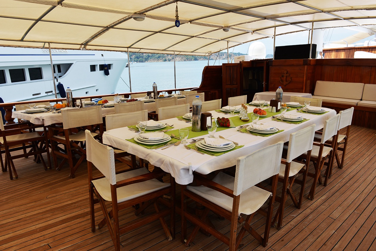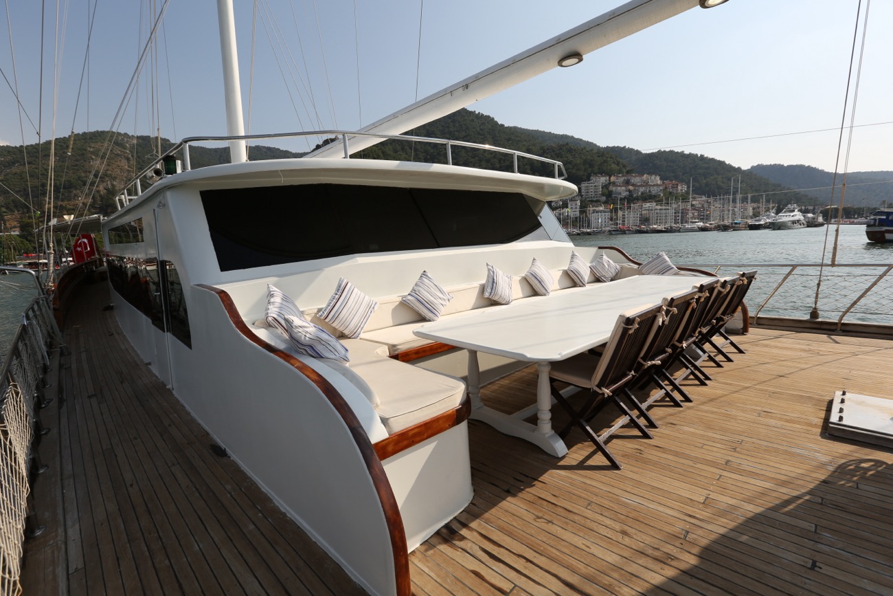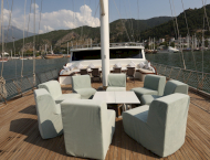 VAT, all meals and drinks for the charter, fuel for motor-operated equipment (tender, water sports), all marinas, all land tours, transfers, any personal expenses of the guests, crew gratuity (10-15% from the charter fee). Fuel surcharge for portion of charter outside of Turkish waters, any customs expenses if applicable.