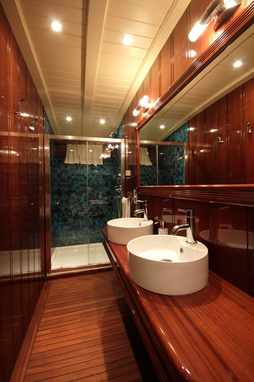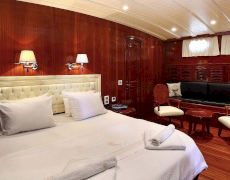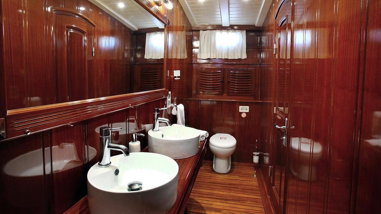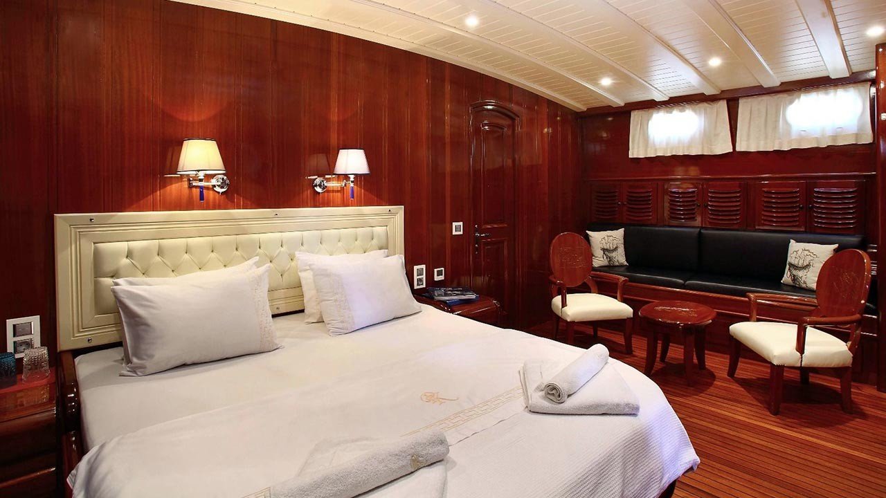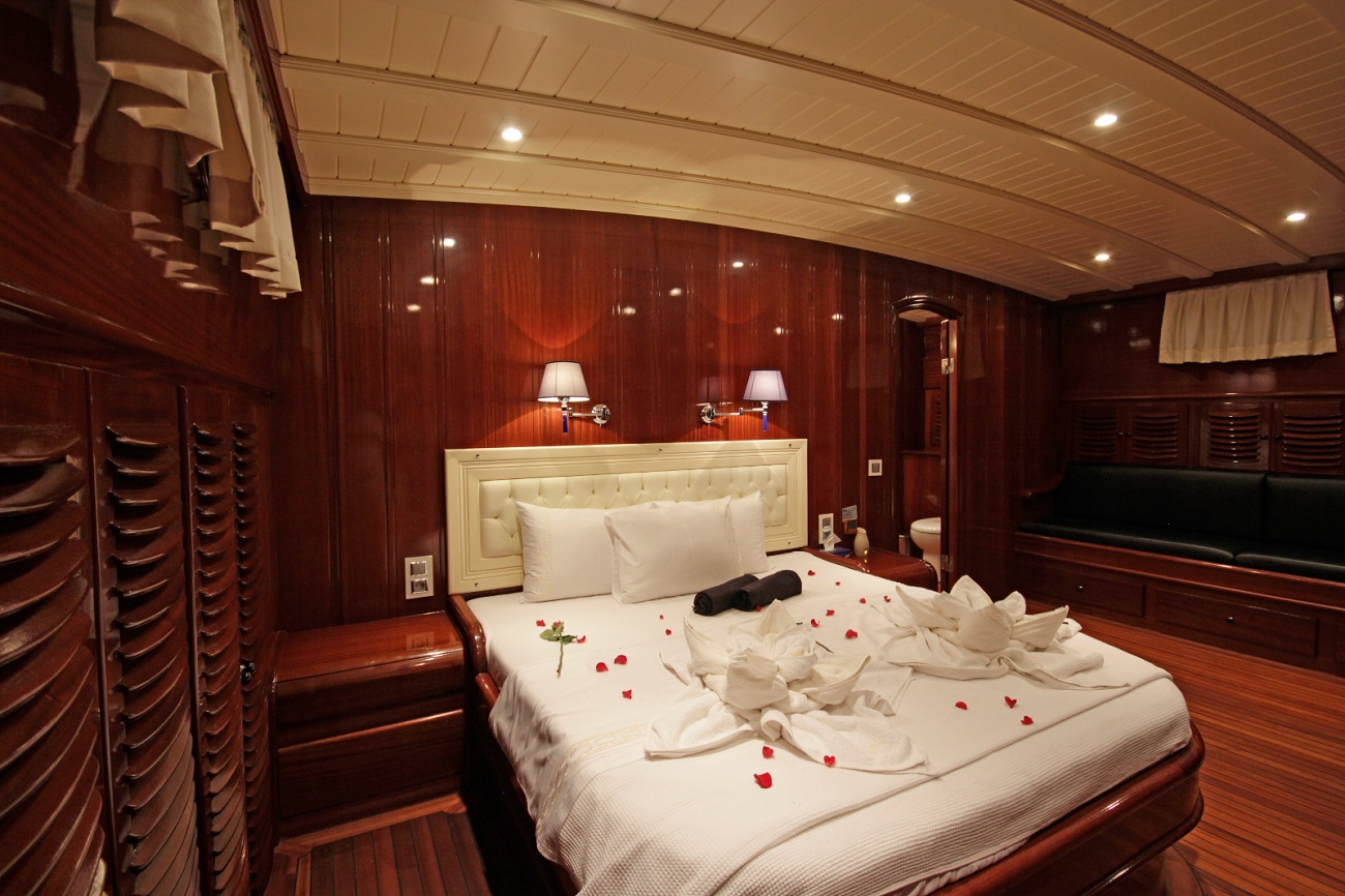 Мастер-каюта на борту яхты KAYA GUNERI PLUS занимает всю ширину кормовой части судна, а это значит, что она очень вместительная. Однако, в арсенале KAYA GUNERI PLUS не одна, а две мастер-каюты. Вторая - также очень просторная и расположена во всю ширину судна. Также имеется две двуспальные каюты и две одинаковые каюты-твин. В каждой есть отдельная ванная комната и достаточно пространства, чтобы вместить все личные вещи гостей.
