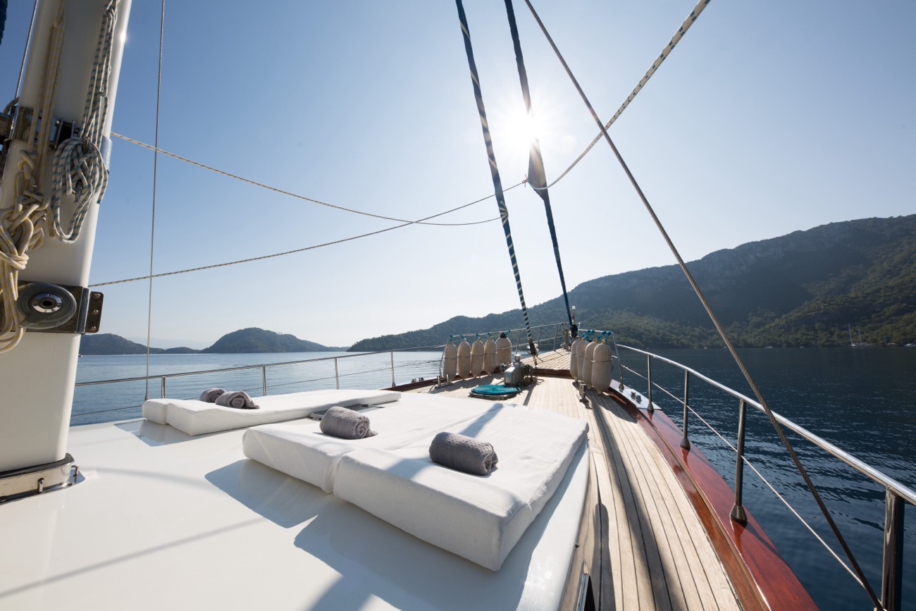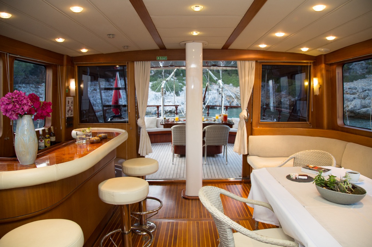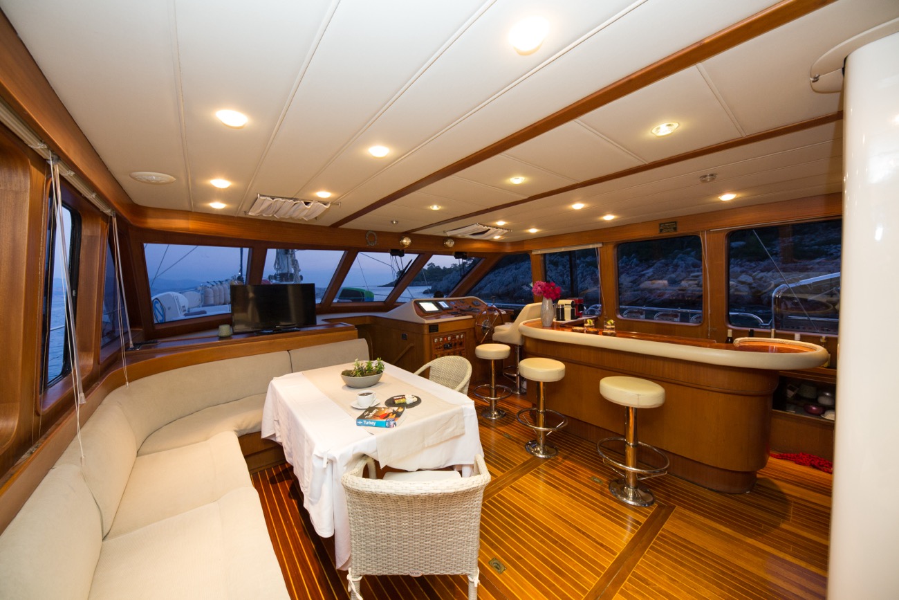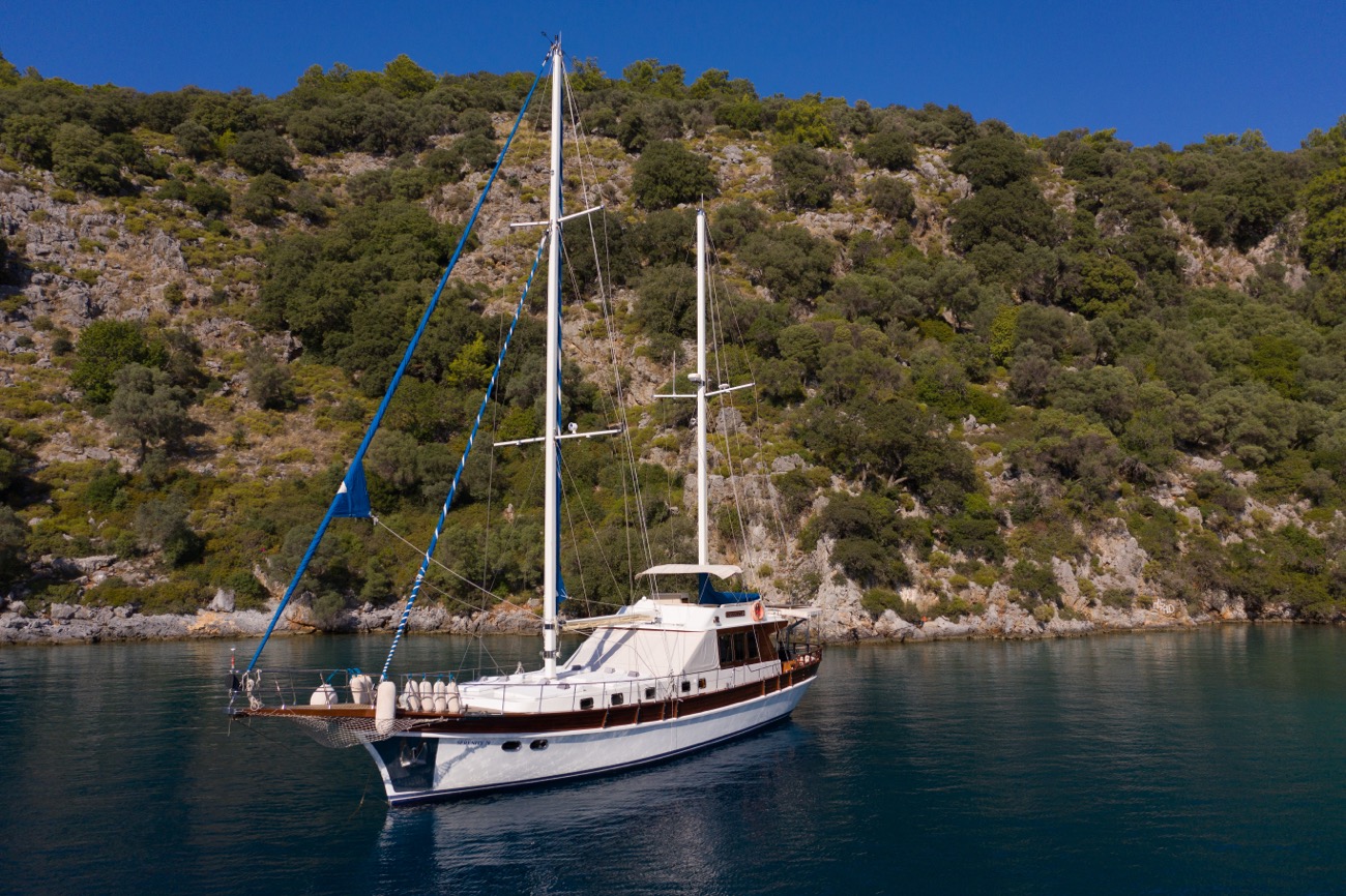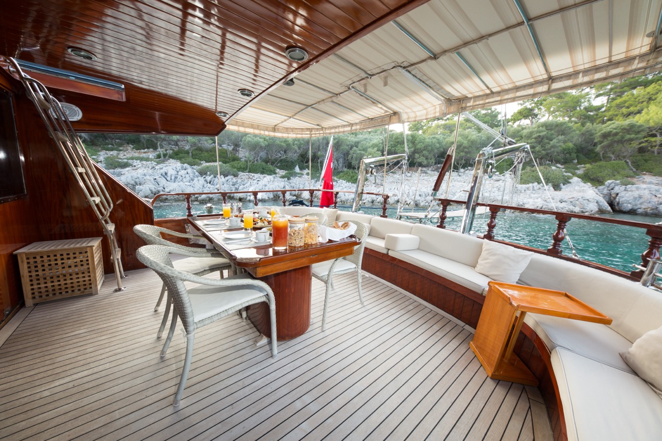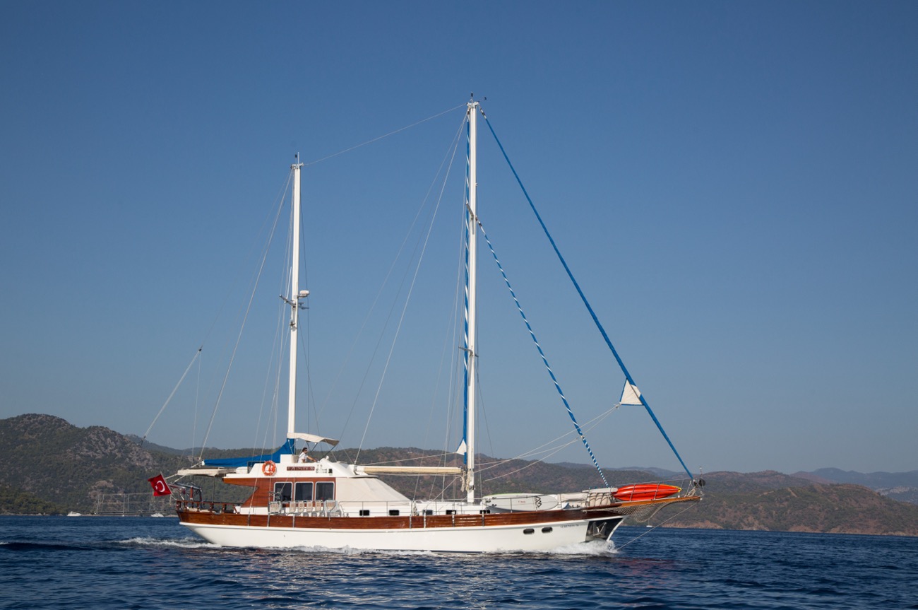 Это судно ручной работы с корпусом традиционной гулеты и с такой планировкой, чтобы на борту яхты было много пространства и свободного места внутри судна и снаружи.