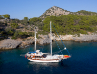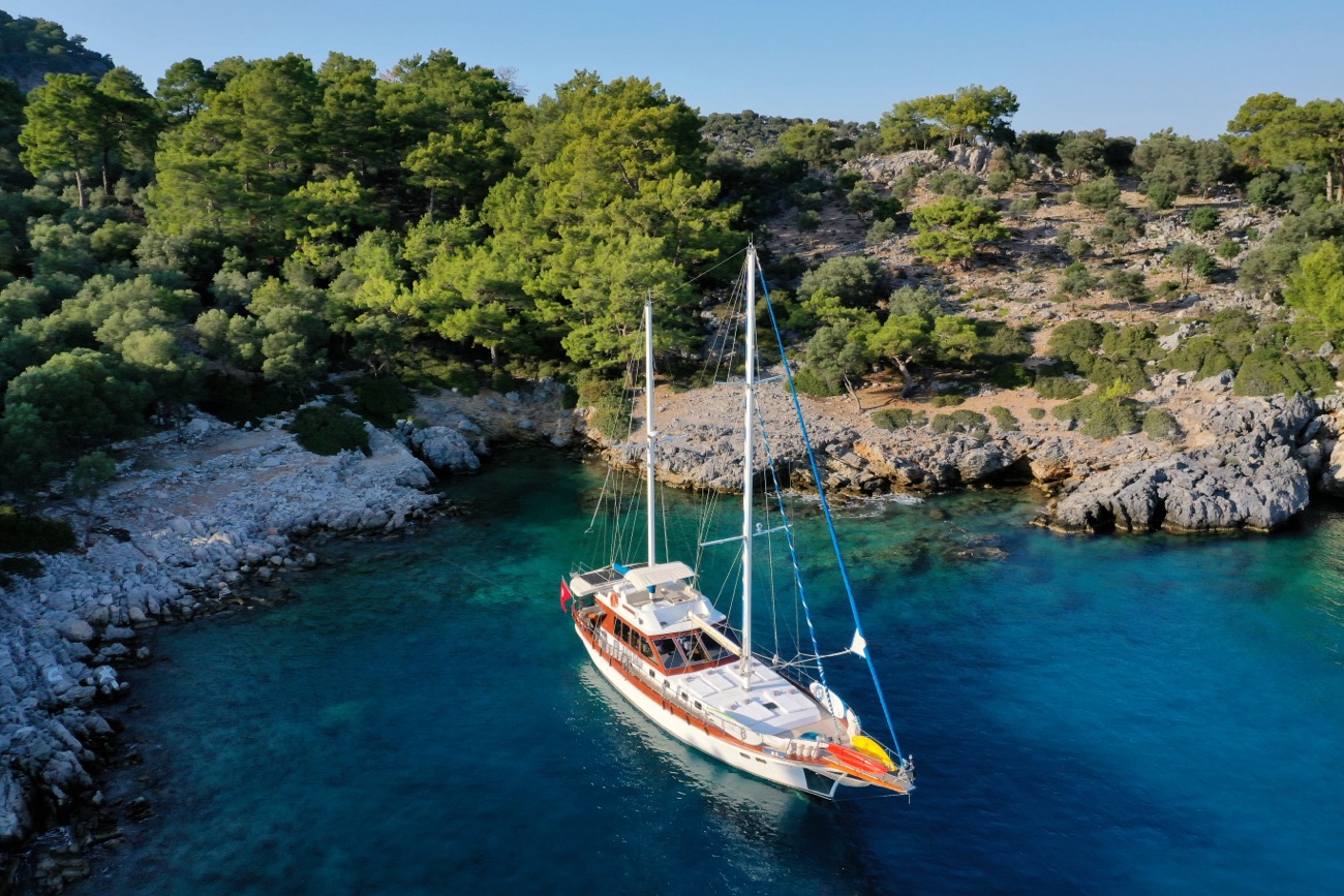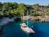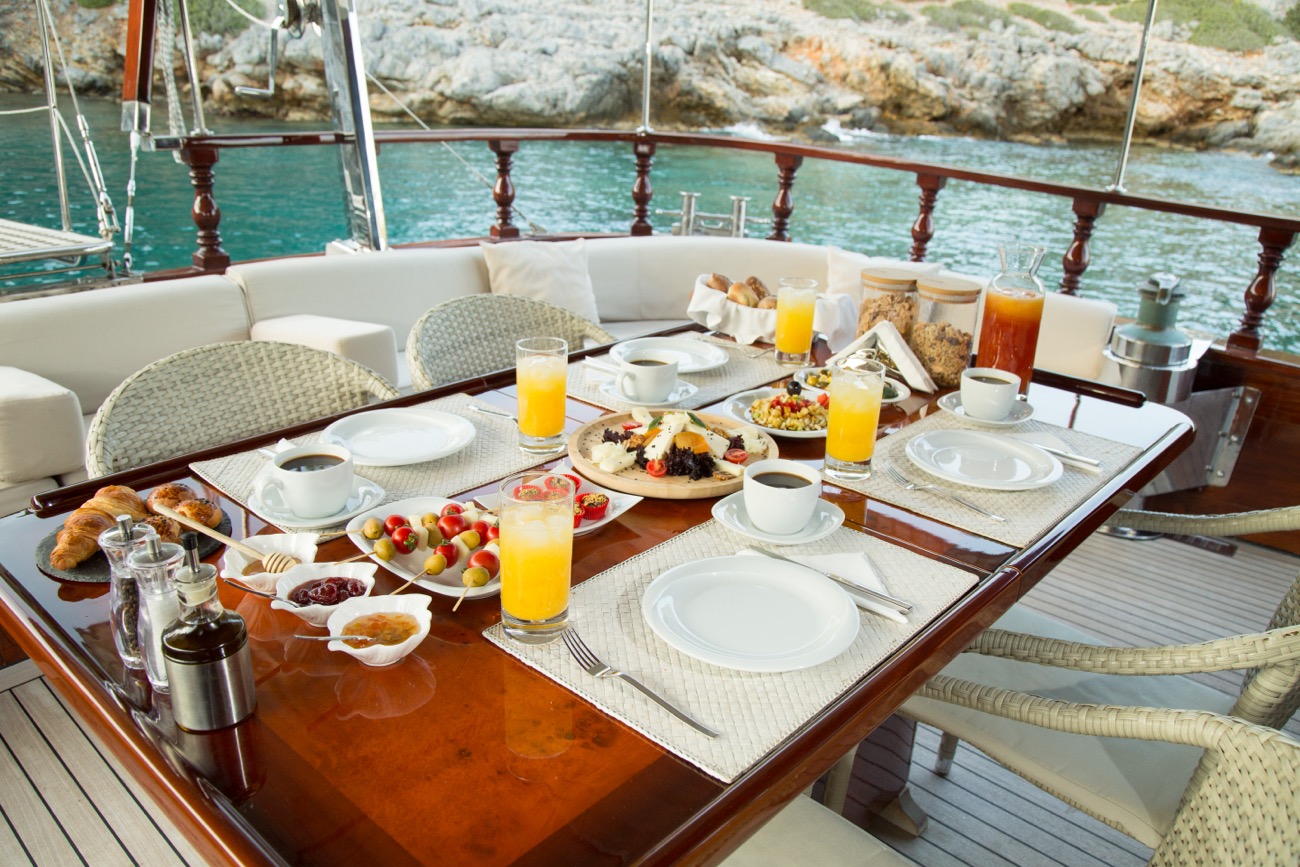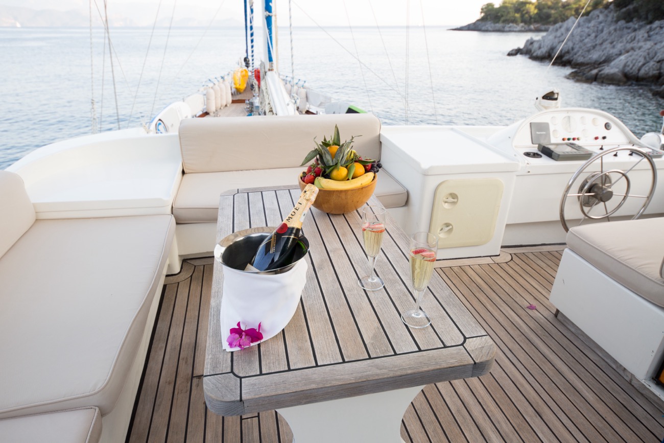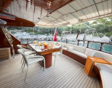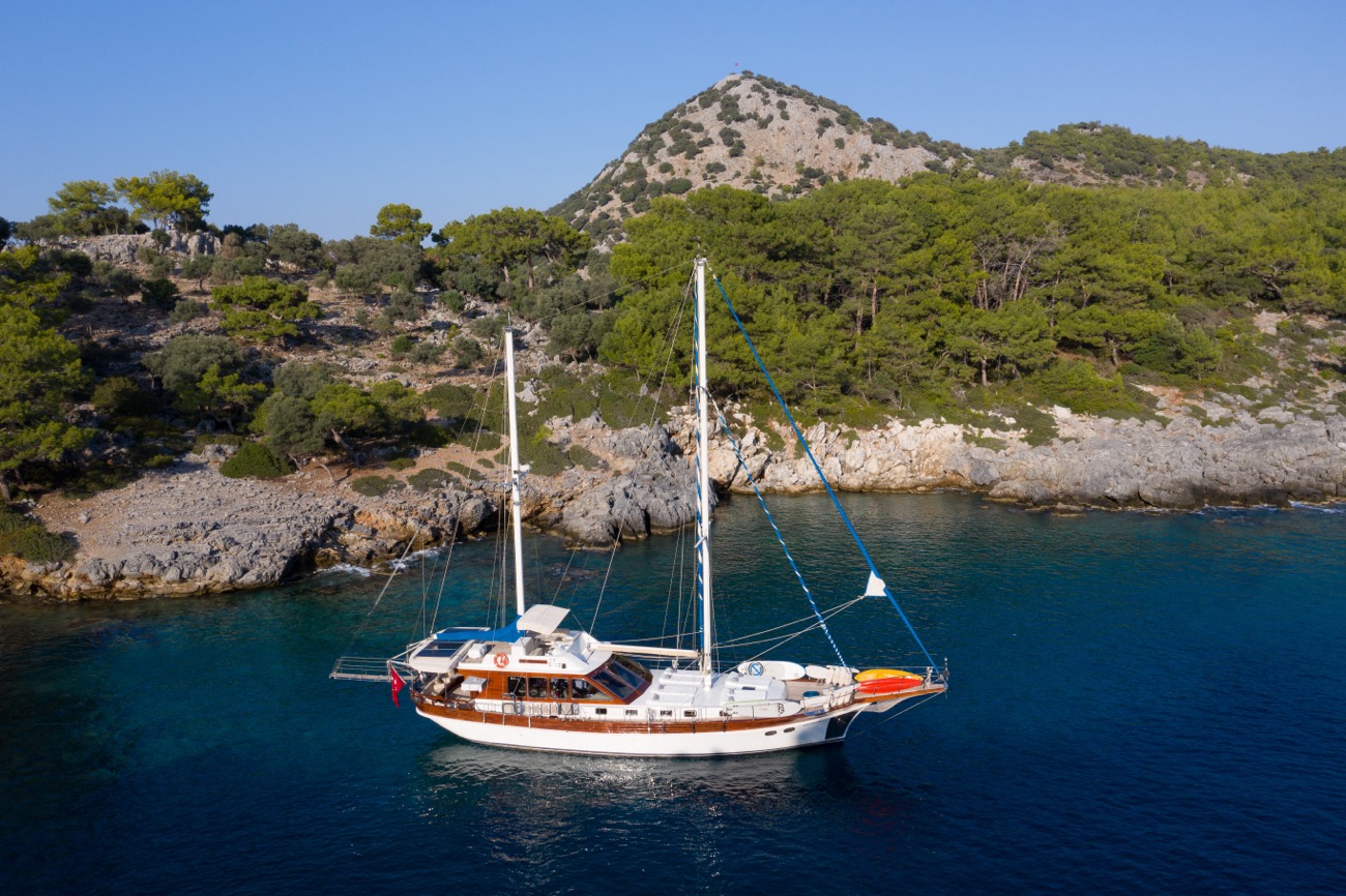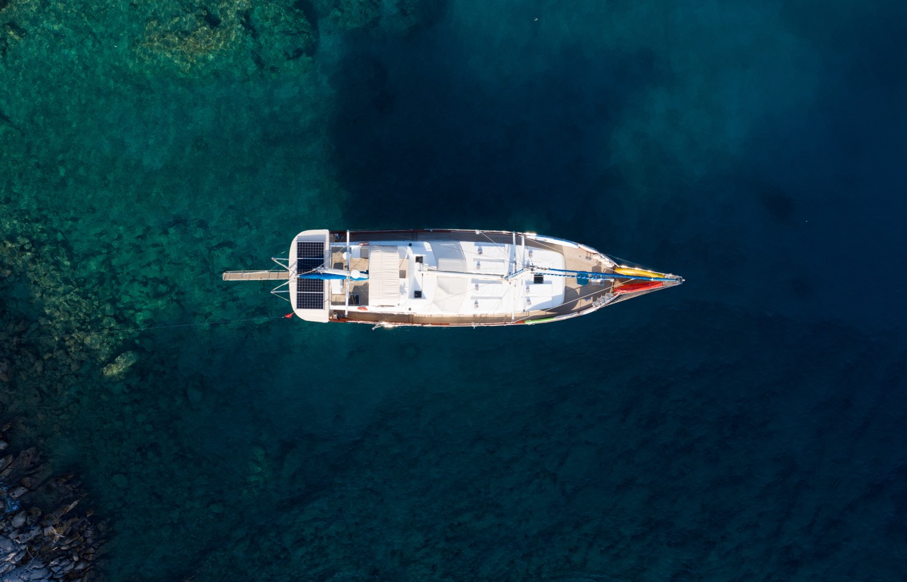 Это судно ручной работы с корпусом традиционной гулеты и с такой планировкой, чтобы на борту яхты было много пространства и свободного места внутри судна и снаружи.