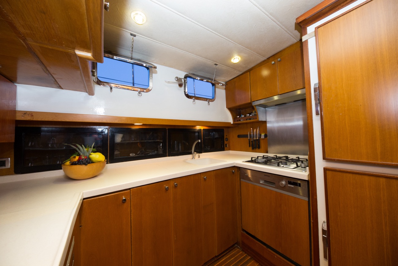 Профессиональный экипаж из двух человек бережно относится к яхте и всегда поддерживает её в отличном состоянии.