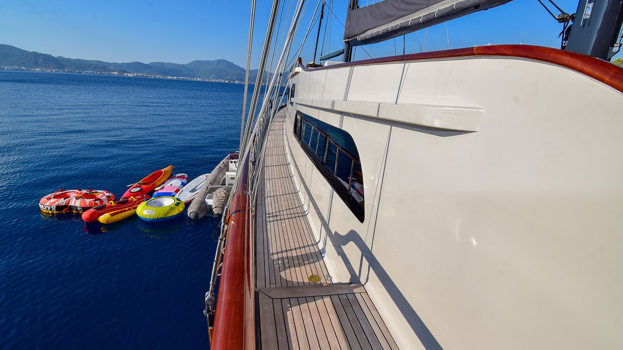 Charter rate includes, cruising fuel for 3-4 hours a day, A/C, all charter & berth taxes, expenses for port procedures in Turkey, clean bed linen and bath & sun towels, use of facilities on board, yacht insurance
