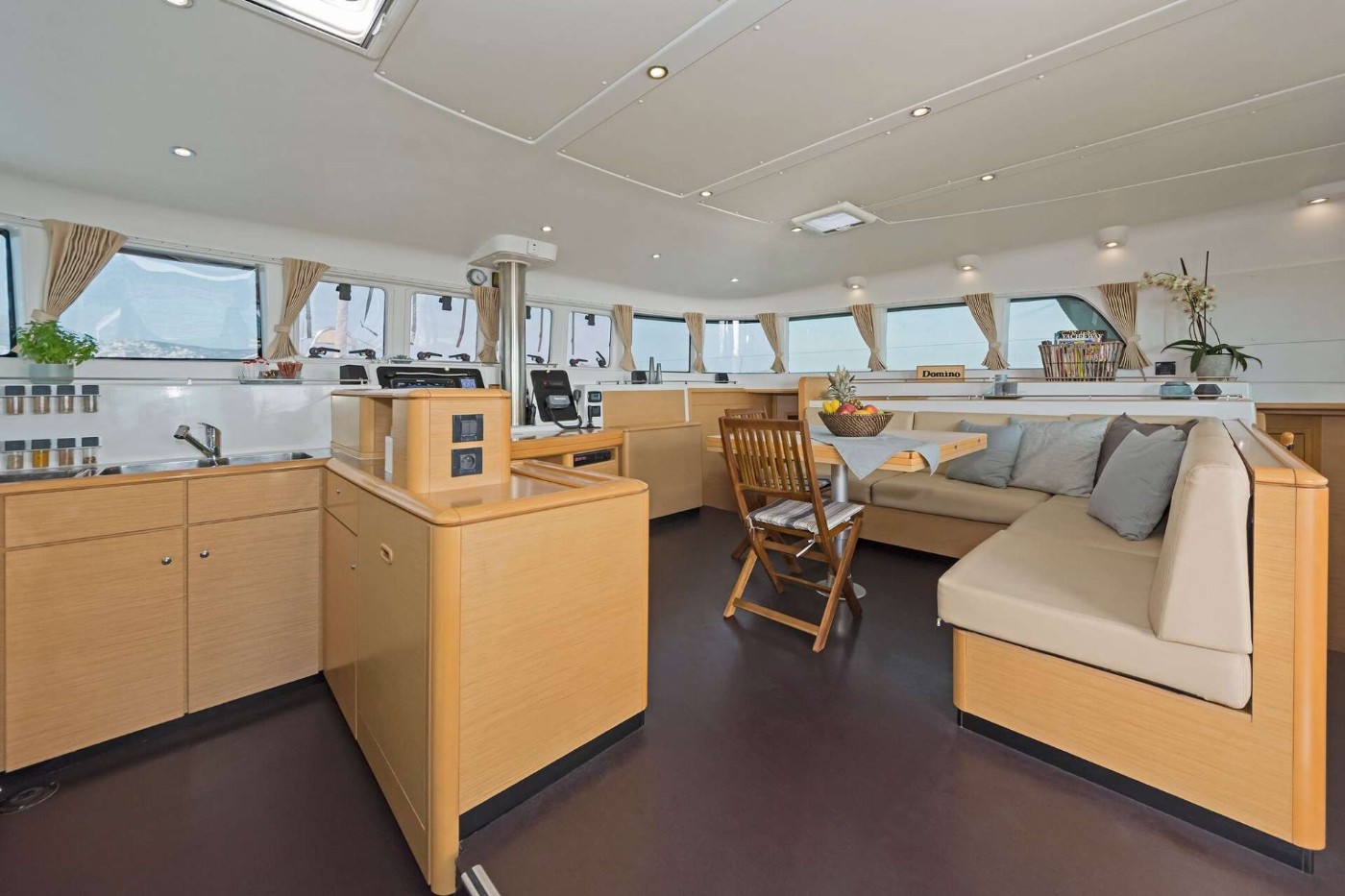 Spacious saloon area with daybeds and settees