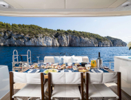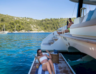 • use of on board water sports equipment: Black Pischel ALU HD 4,2m Rib with Yamaha 60 hp outboard, snorkeling gear, water-skis, kneeboard, water tube, towing ring, kayak, 2 x paddle board (SUP) fishing gear, Floating mats