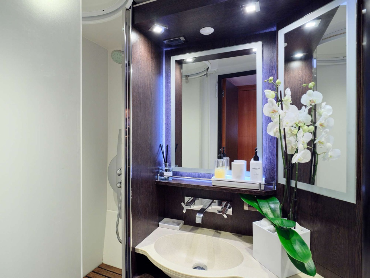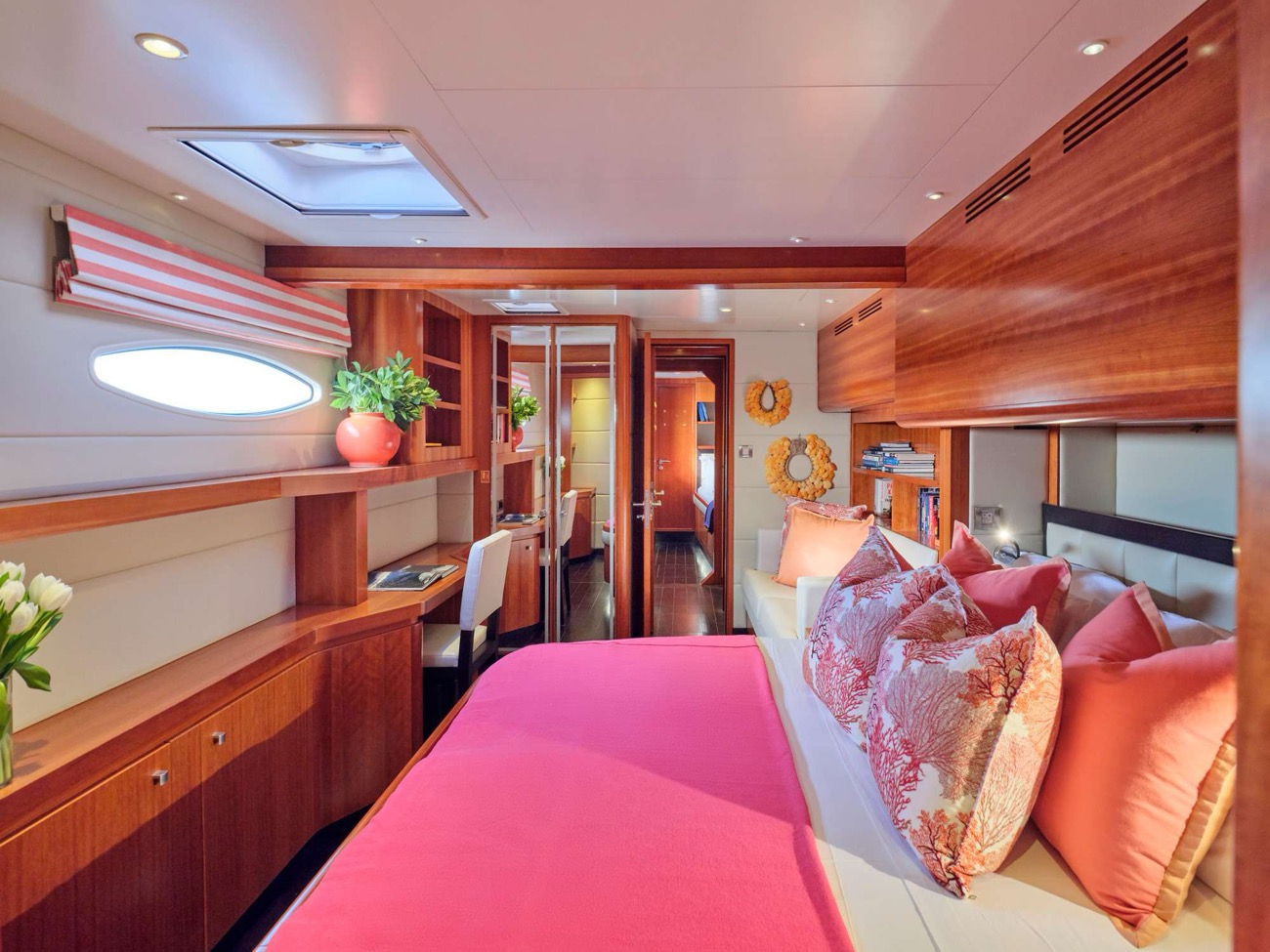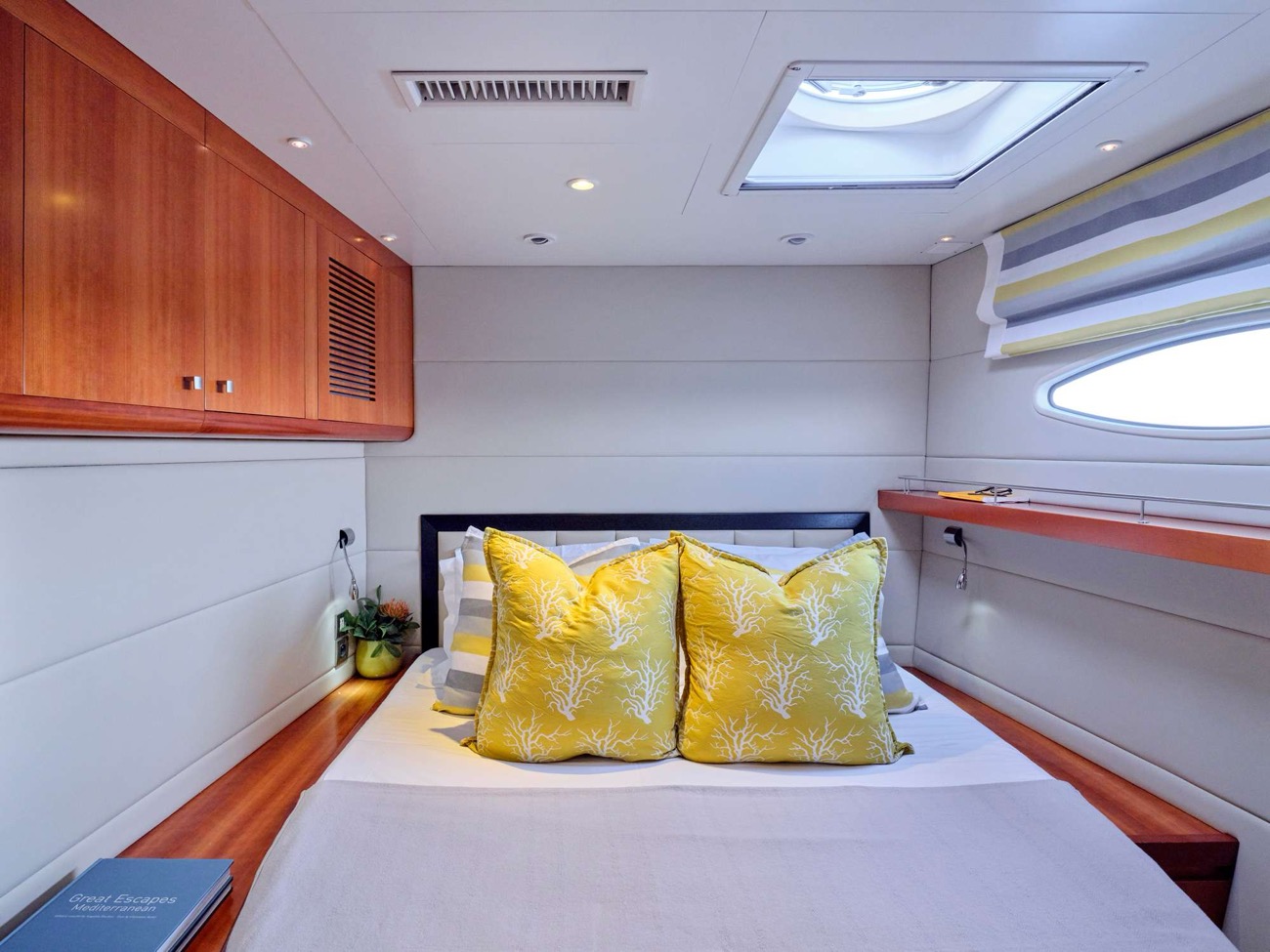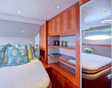 One owner suite with a private bathroom, 3 Queen size cabins with private bathroom, 1 twin cabin with private bathroom