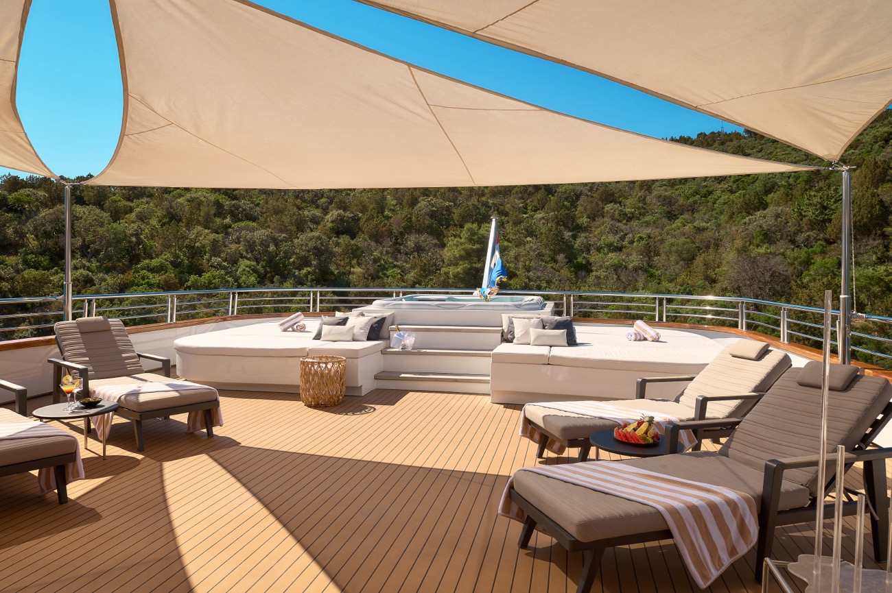 Shipboard accommondation (maximum number of 28 guests sleeping in 14 cabins), fuel for cruising (4 hours/day), crew - 12 crew members (Captain, First Mate, 3 Sailors, 2 Chefs, Chief Stew, 2 Waiters, Housekeeper, Masseuse), unlimited A/C, linen (bed sheets, bathroom, and beach towels), wifi, 4 massages per day