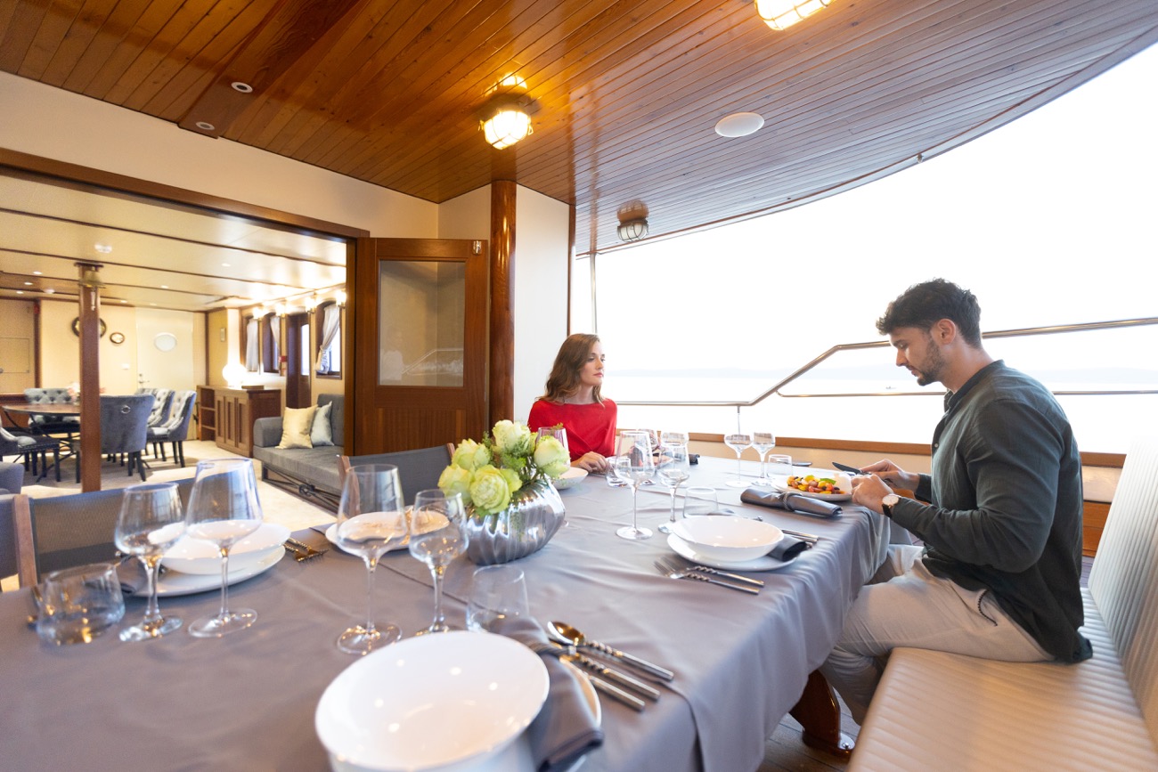 Charter price includes, accommondation on the yacht, 5 crew members, wages and food for the crew, VAT, fuel for main engines up to 4 hours cruising per day, fuel for 12 hours/day of generator use, tender 70 HP, complete linen and towels, yacht insurance and sojourn taxes, yacht cleaning, wifi