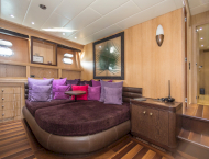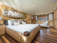 The yacht provides generous accommodation for up to 8 guests in 3 staterooms: a Master cabin, a VIP cabin, one double cabin, and a lounge area that can be transformed into a sleeping zone.