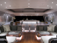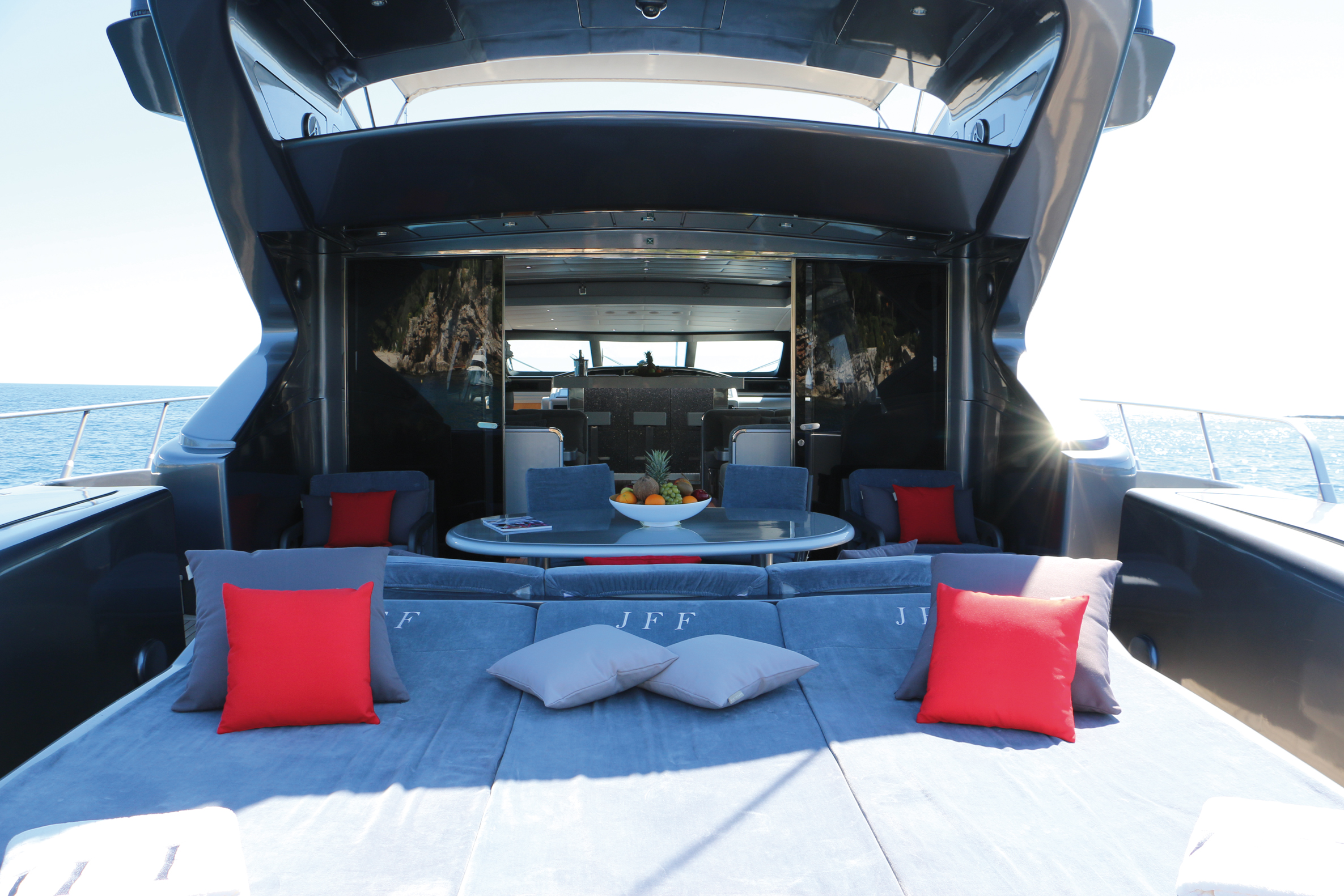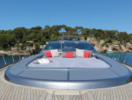 The spacious sundecks make it easy to enjoy the Mediterranean outdoors. Two large sunpads, one at the front deck and the second at the fly, are perfect for spending unlimited hours of sunbathing or simply relaxing during the cruise. A large platform at the aft deck makes it easy and safe to access the crystal-clear waters of the Mediterranean Sea.