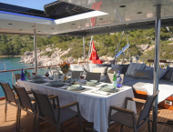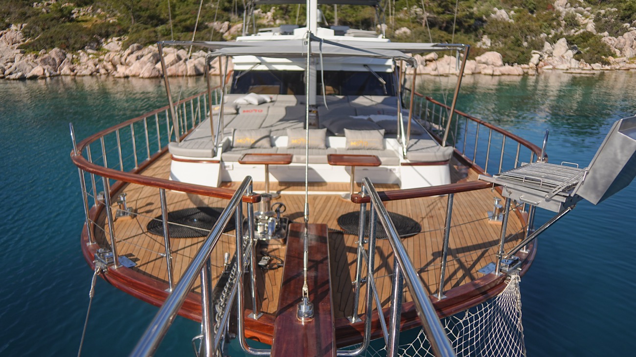 Charter rate includes, yacht insurance, fuel for average cruising time a day, daily cabin and bathroom cleaning, crew services, mooring fees in Türkiye, rent of the yacht, service boat, canoes, paddle boards, etc., ship's laundry (if available)