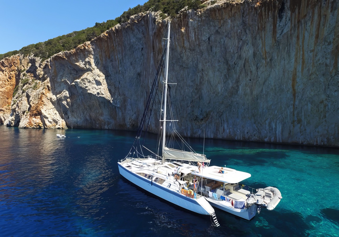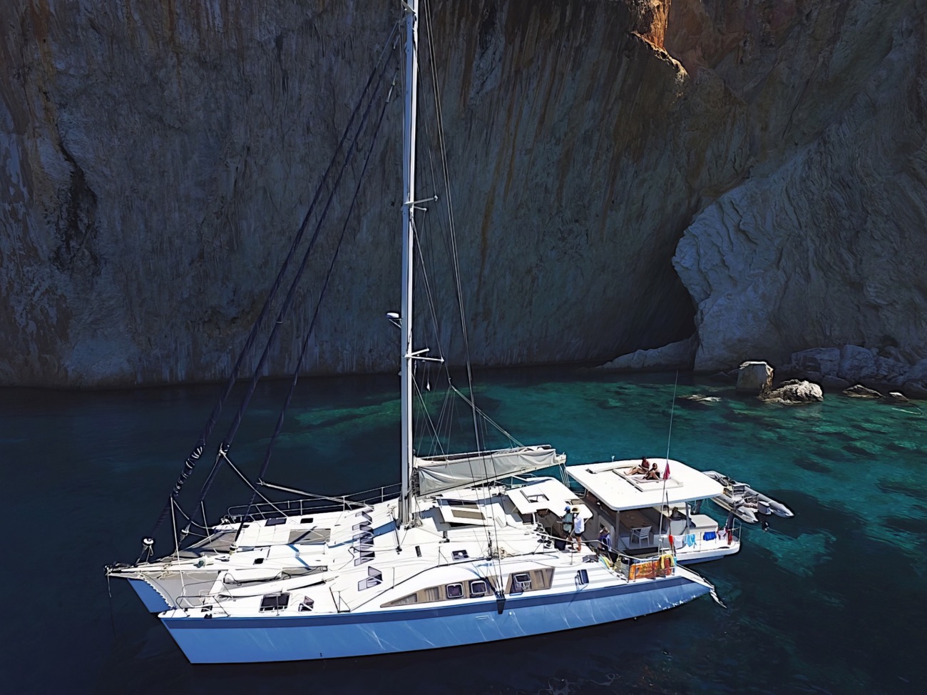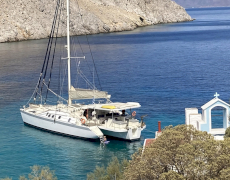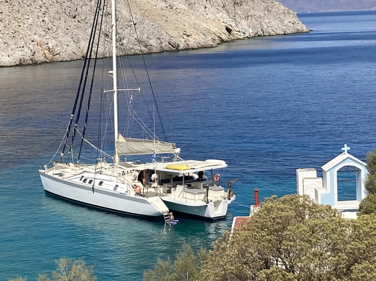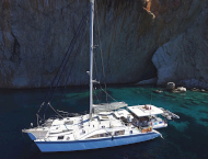 Captain Paul Perchey and CONAN — a trimaran, which first came to our company as a catamaran back in the 1990s — have been chartering in the Eastern Mediterranean and in the Red Sea since 1989. Few can rival Paul’s encyclopaedic knowledge of the area, and his innate sense of hospitality. Paul added an additional hull over the course of two winters and now CONAN offers even more deck space than before. CONAN sails beautifully and she is very much a haven of tranquility at anchor. Having this much space on board appeals to many families who are travelling with children… and of course, as CONAN is fully crewed, there is always a careful crew member to ensure that the kids are kept entertained doing water sports and playing games on deck.