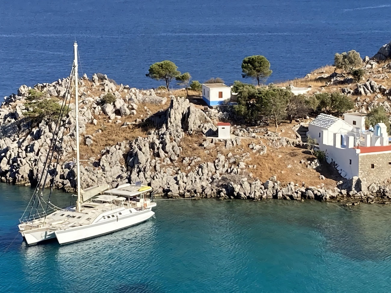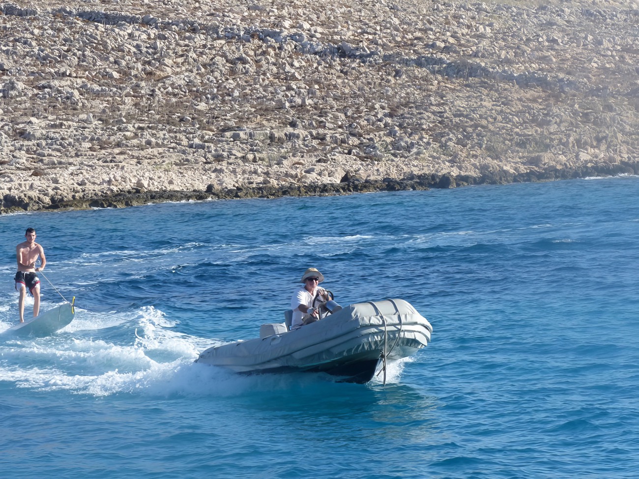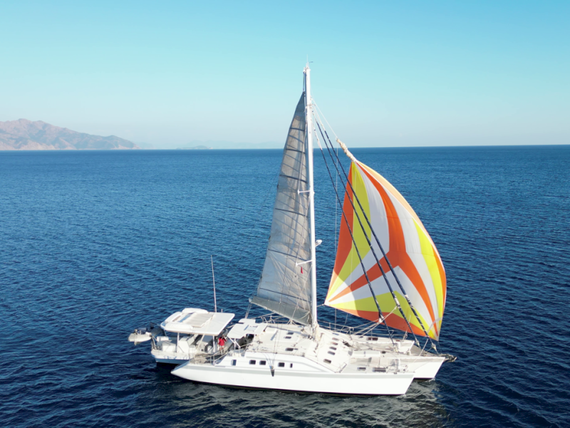 Captain Paul Perchey and CONAN — a trimaran, which first came to our company as a catamaran back in the 1990s — have been chartering in the Eastern Mediterranean and in the Red Sea since 1989. Few can rival Paul’s encyclopaedic knowledge of the area, and his innate sense of hospitality. Paul added an additional hull over the course of two winters and now CONAN offers even more deck space than before. CONAN sails beautifully and she is very much a haven of tranquility at anchor. Having this much space on board appeals to many families who are travelling with children… and of course, as CONAN is fully crewed, there is always a careful crew member to ensure that the kids are kept entertained doing water sports and playing games on deck.